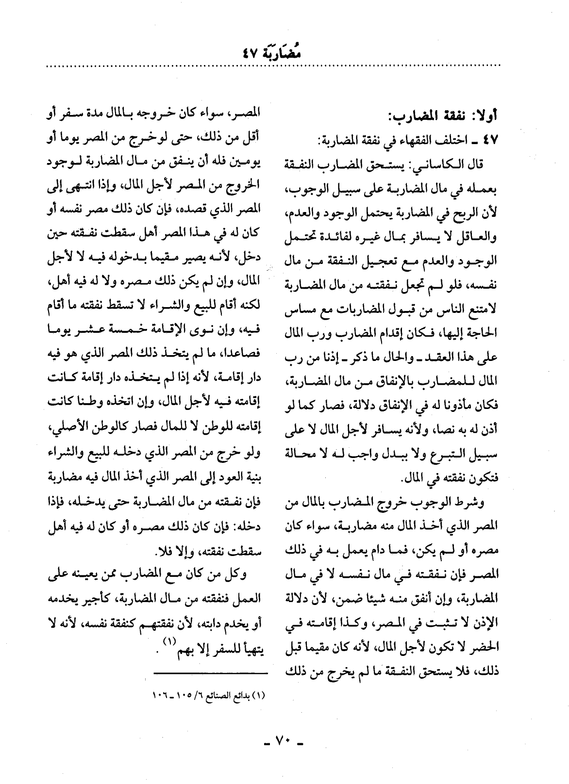 47 - اخْتَلَفَ الْفُقَهَاءُ فِي نَفَقَةِ الْمُضَارَبَةِ: