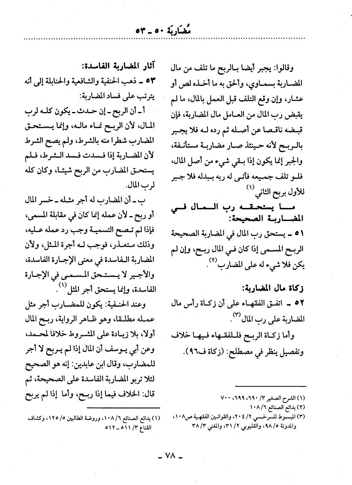 52 - اتَّفَقَ الْفُقَهَاءُ عَلَى أَنَّ زَكَاةَ رَأْسِ مَال الْمُضَارَبَةِ عَلَى رَبِّ الْمَال (3) .