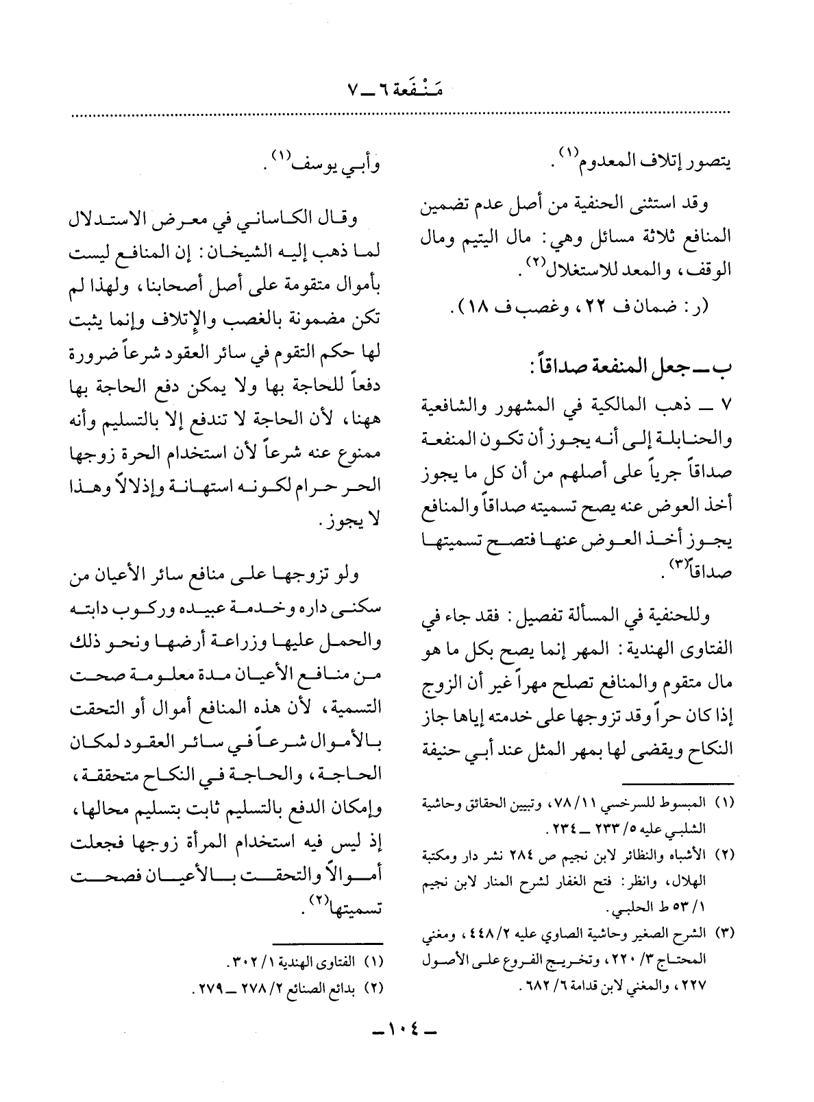 (1) المبسوط للسرخسي 11 / 78، وتبيين الحقائق وحاشية الشلبي عليه 5 / 233 - 234.