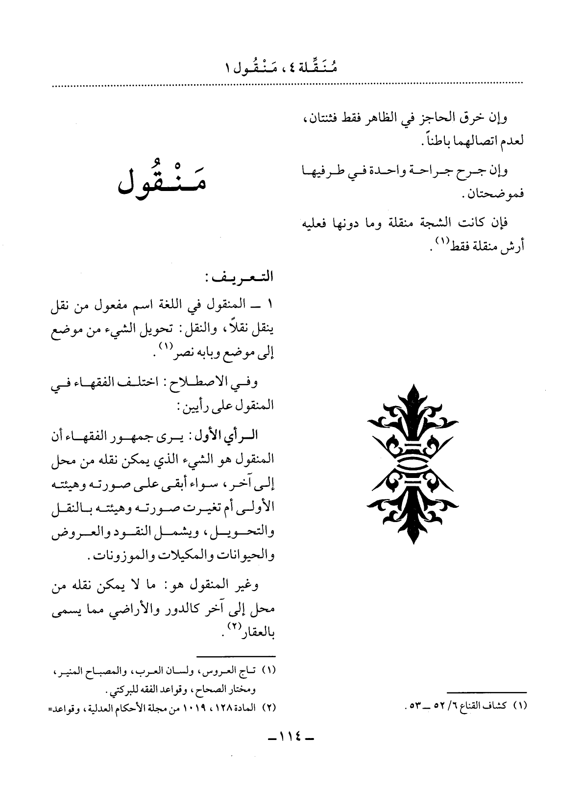 (1) تاج العروس، ولسان العرب، والمصباح المنير، ومختار الصحاح، وقواعد الفقه للبركتي.