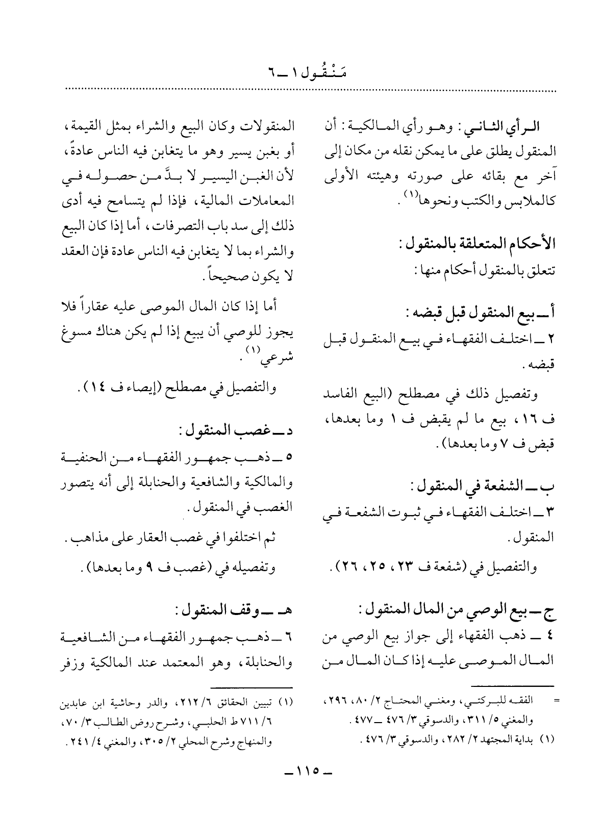 الأَْحْكَامُ الْمُتَعَلِّقَةُ بِالْمَنْقُول: