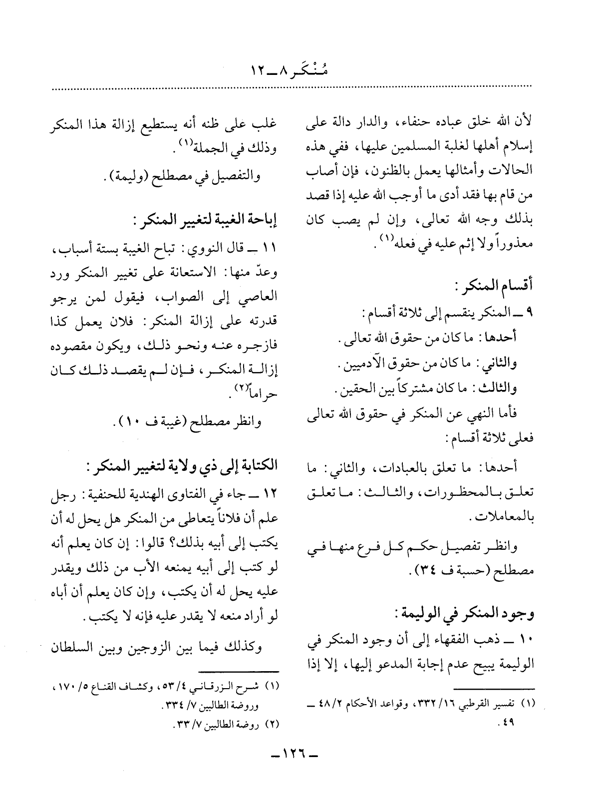 9 - الْمُنْكَرُ يَنْقَسِمُ إِلَى ثَلاَثَةِ أَقْسَامٍ: