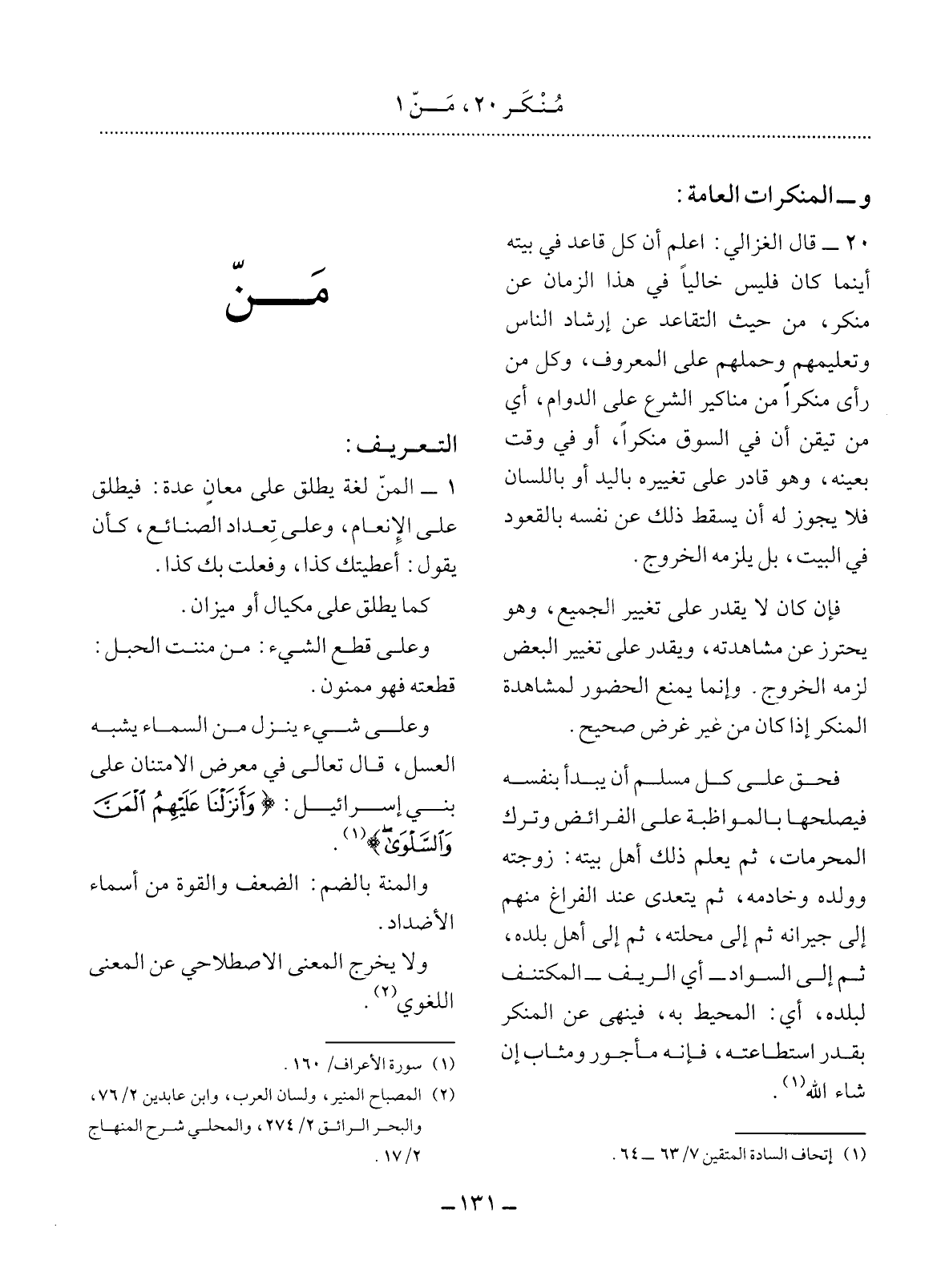 (2) المصباح المنير، ولسان العرب، وابن عابدين 2 / 76، والبحر الرائق 2 / 274، والمحلي شرح المنهاج 2 / 17.