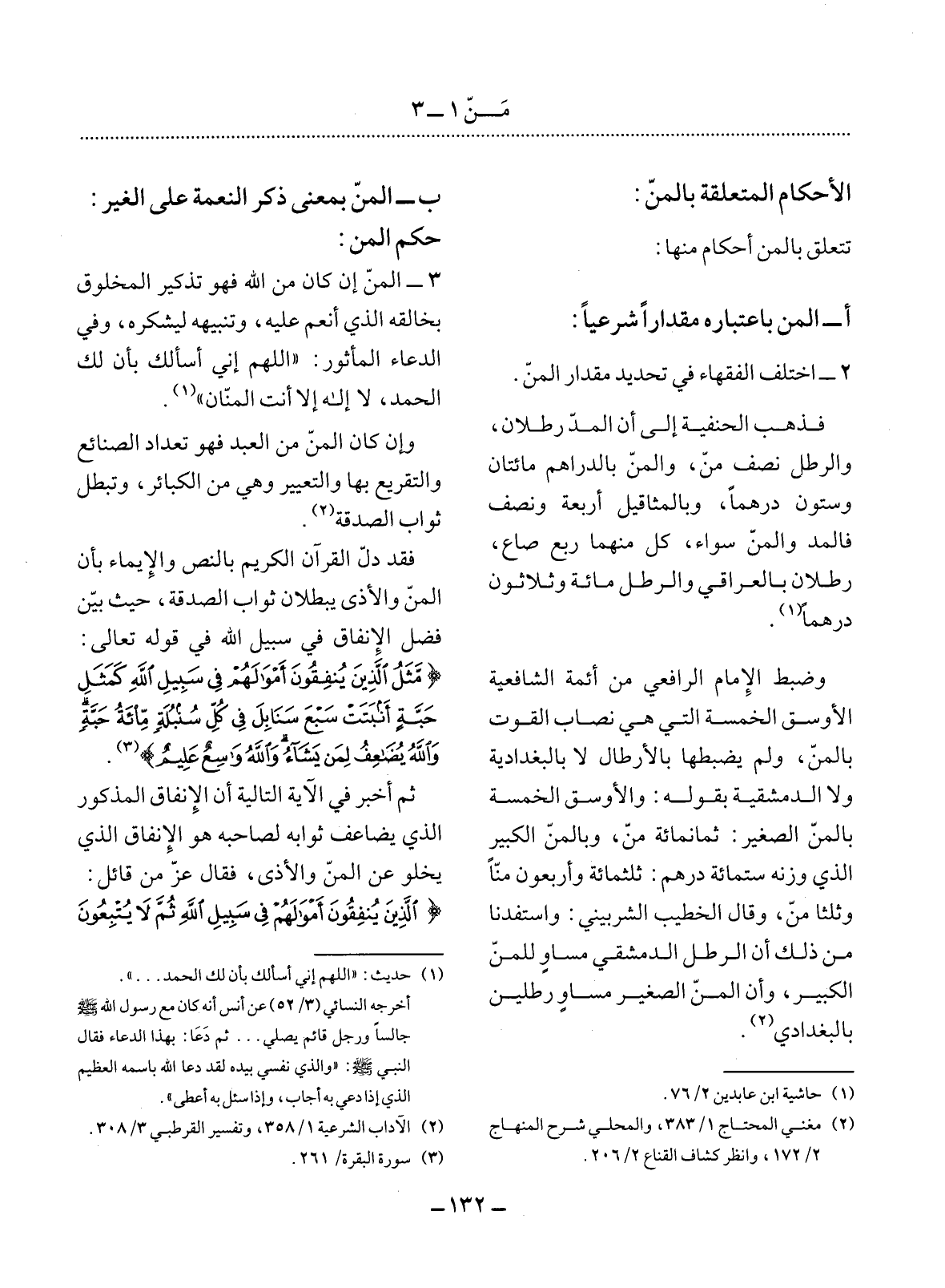 الأَْحْكَامُ الْمُتَعَلِّقَةُ بِالْمَنِّ:
