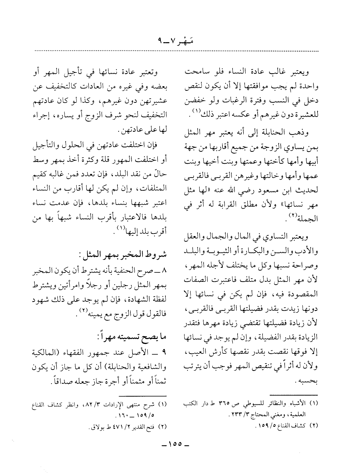 (1) شرح منتهى الإرادات 3 / 82، وانظر كشاف القناع 5 / 159 - 160.