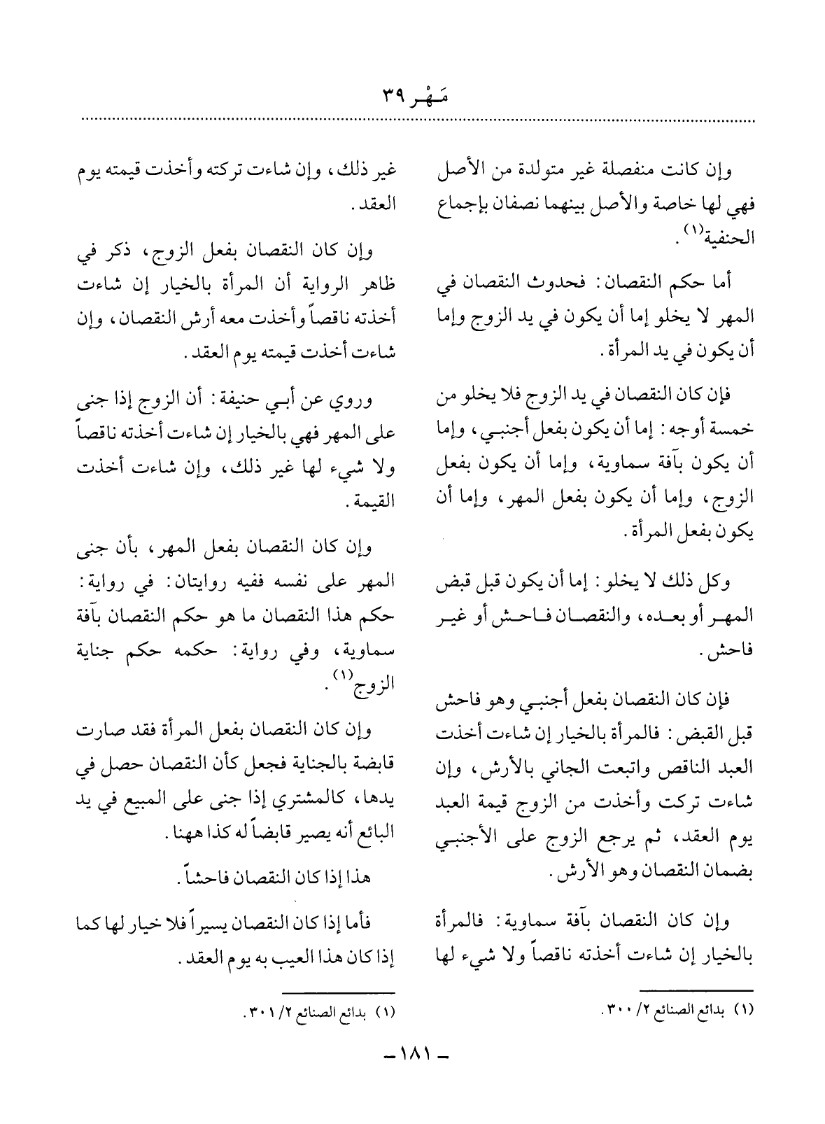 (1) بدائع الصنائع 2 / 301.