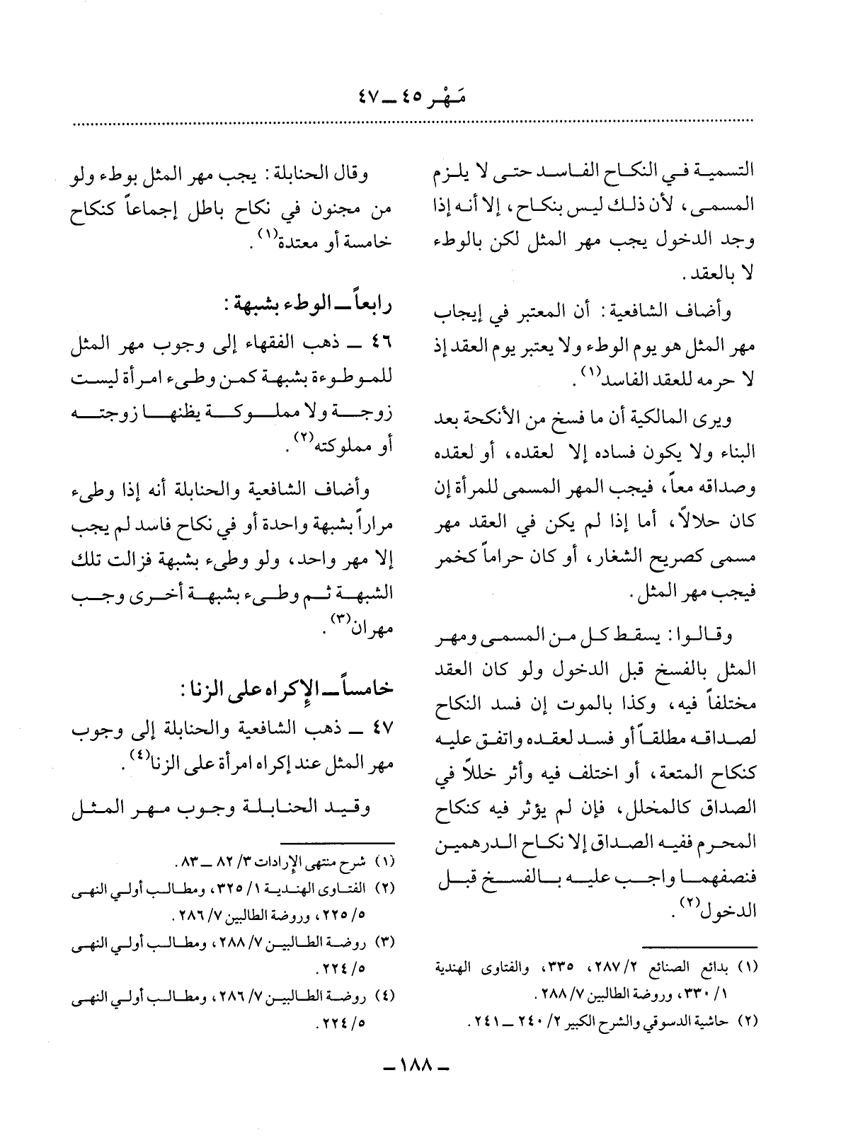 47 - ذَهَبَ الشَّافِعِيَّةُ وَالْحَنَابِلَةُ إِلَى وُجُوبِ مَهْرِ الْمِثْل عِنْدَ إِكْرَاهِ امْرَأَةٍ عَلَى الزِّنَا (4)