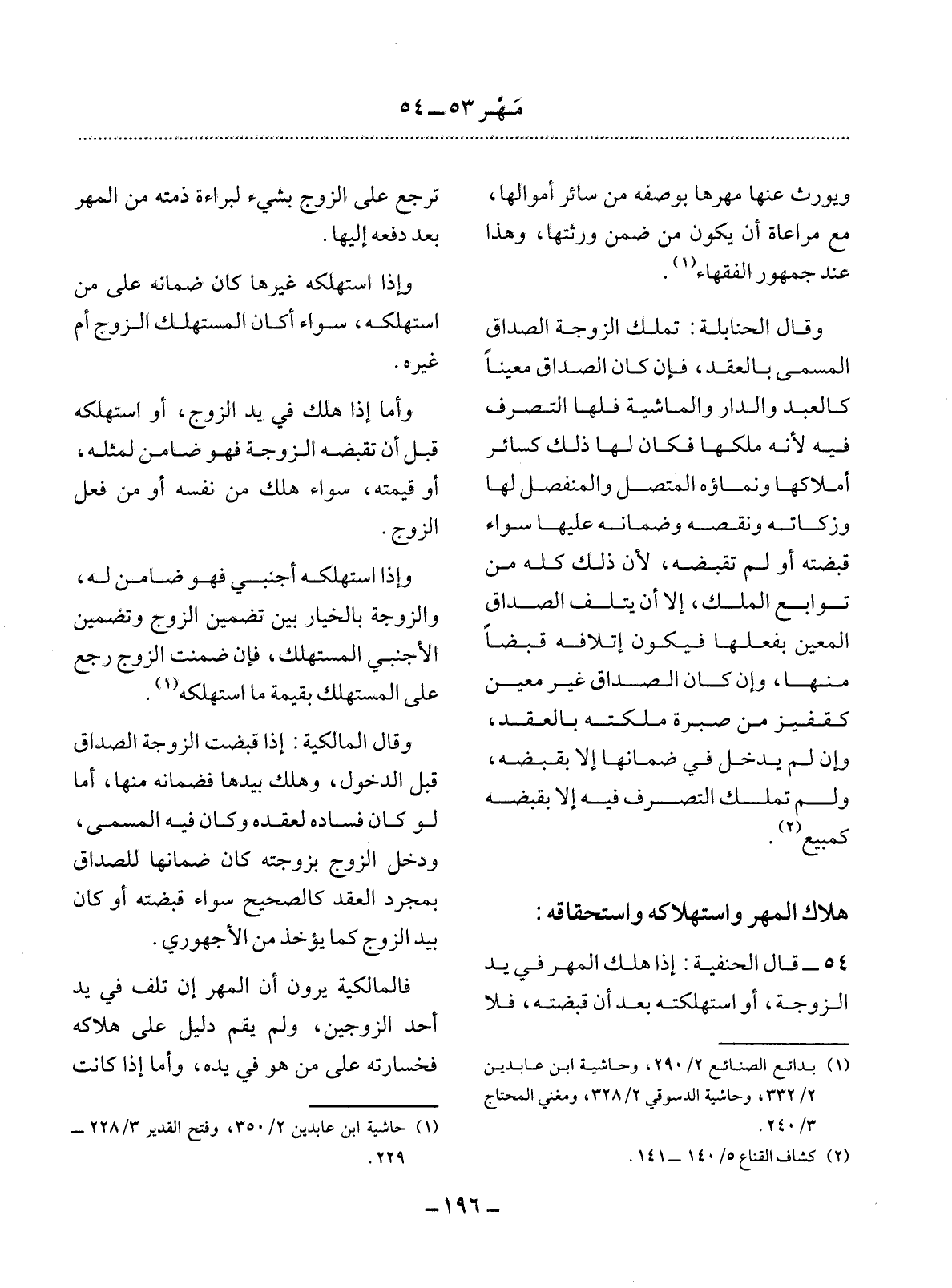 54 - قَال الْحَنَفِيَّةُ: إِذَا هَلَكَ الْمَهْرُ فِي يَدِ الزَّوْجَةِ أَوِ اسْتَهْلَكَتْهُ بَعْدَ أَنْ قَبَضَتْهُ فَلاَ