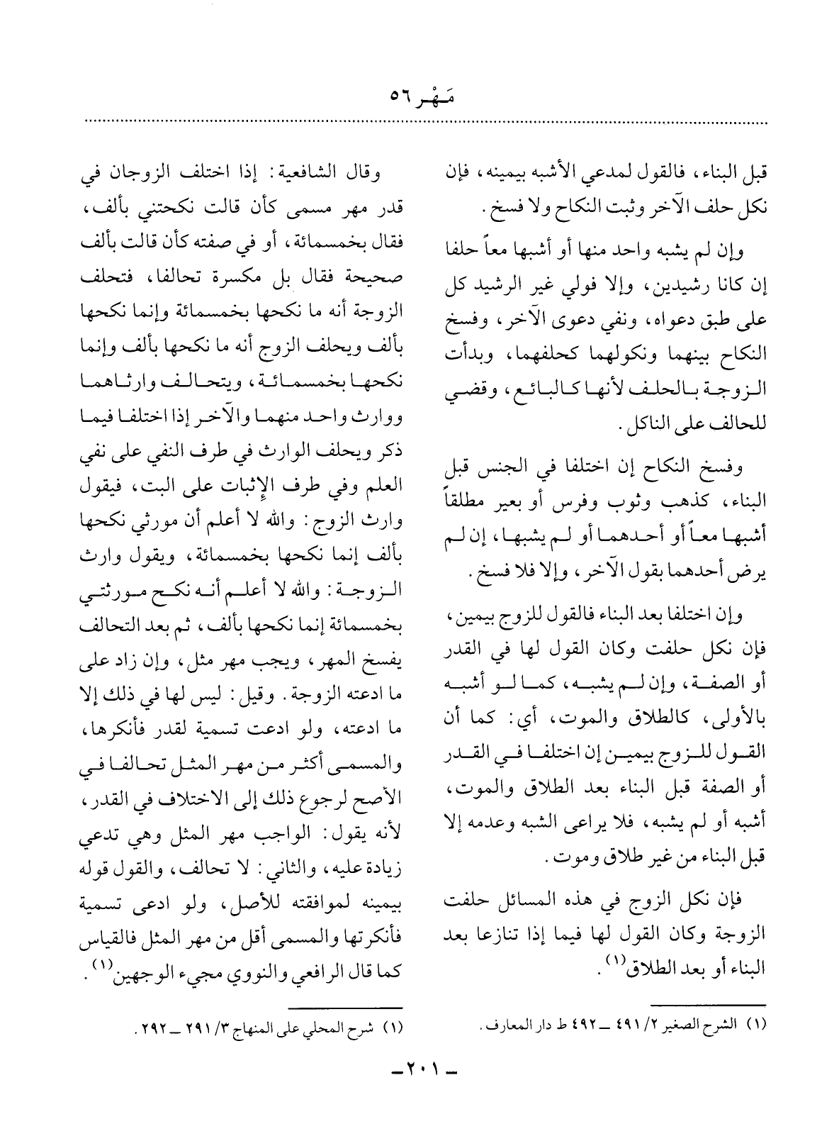 (1) شرح المحلي على المنهاج 3 / 291 - 292.