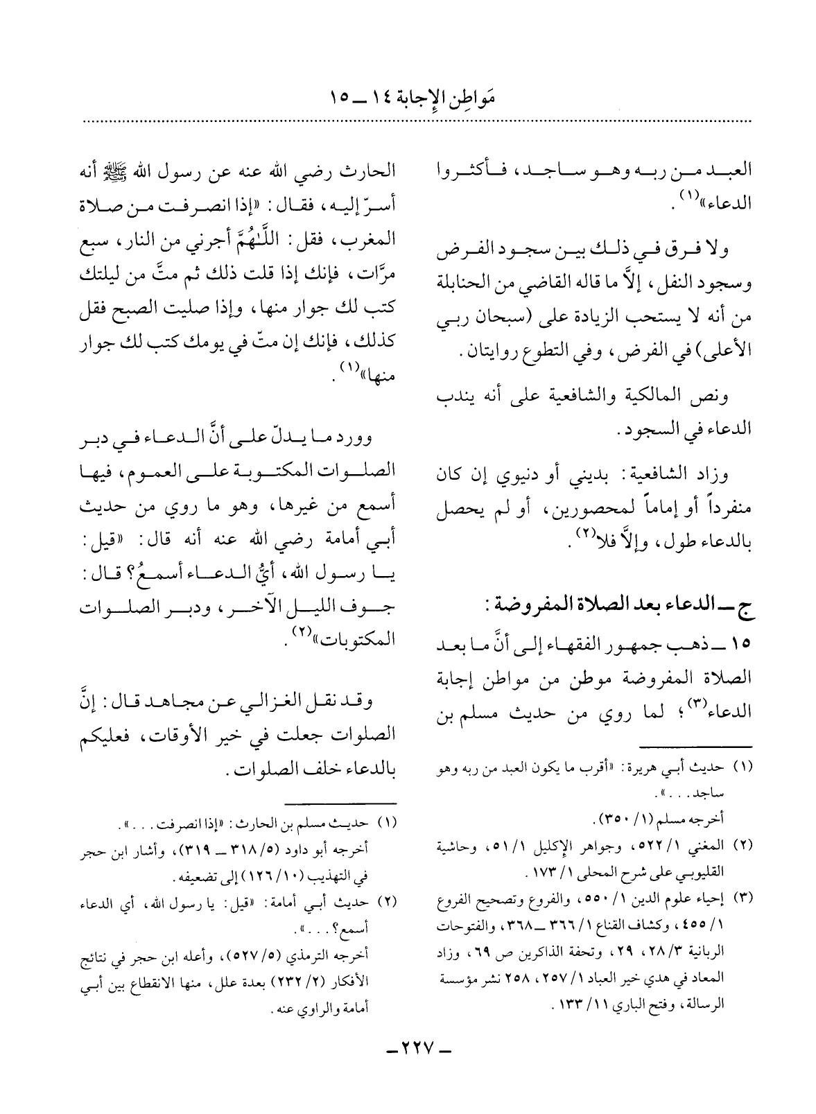 ج - الدُّعَاءُ بَعْدَ الصَّلاَةِ الْمَفْرُوضَةِ 15 - ذَهَبَ جُمْهُورُ الْفُقَهَاءِ إِلَى أَنَّ مَا بَعْدَ الصَّلاَةِ الْمَفْرُوضَةِ مَوْطِنٌ مِنْ مَوَاطِنِ إِجَابَةِ الدُّعَاءِ (3) لِمَا رُوِيَ مِنْ حَدِيثِ مُسْلِمِ بْنِ