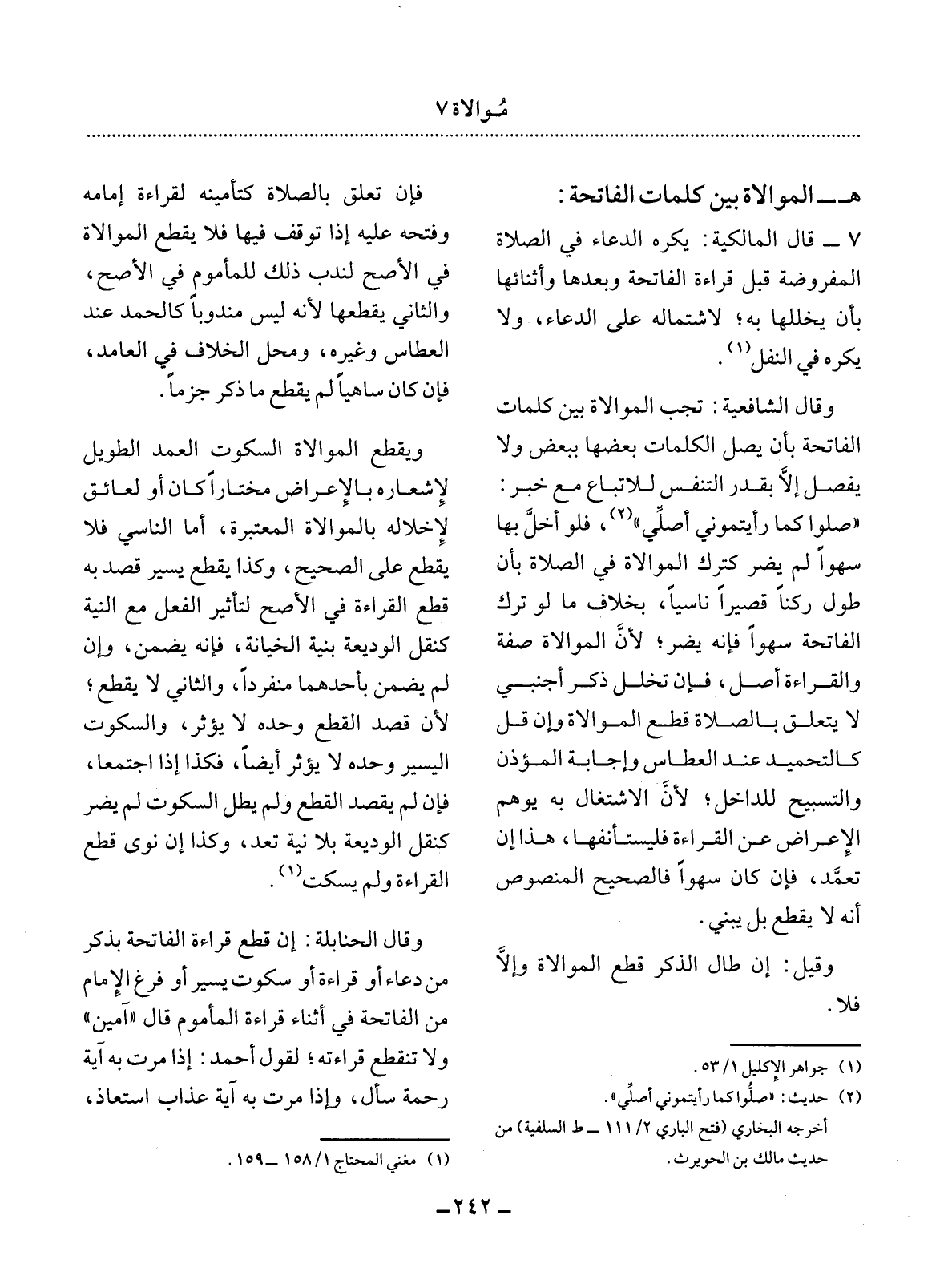 هـ - الْمُوَالاَةُ بَيْنَ كَلِمَاتِ الْفَاتِحَةِ