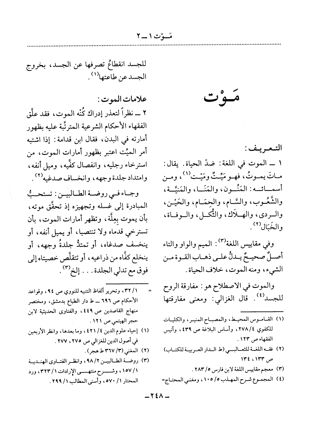 1 - الْمَوْتُ فِي اللُّغَةِ: ضِدُّ الْحَيَاةِ.