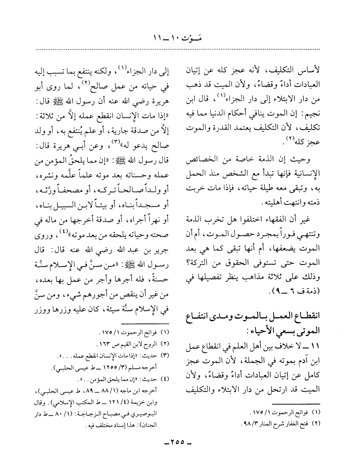 (3) حديث: " إذا مات الإنسان انقطع عمله. . . ". أخرجه مسلم (3 / 1255 - ط عيسى الحلبي) .