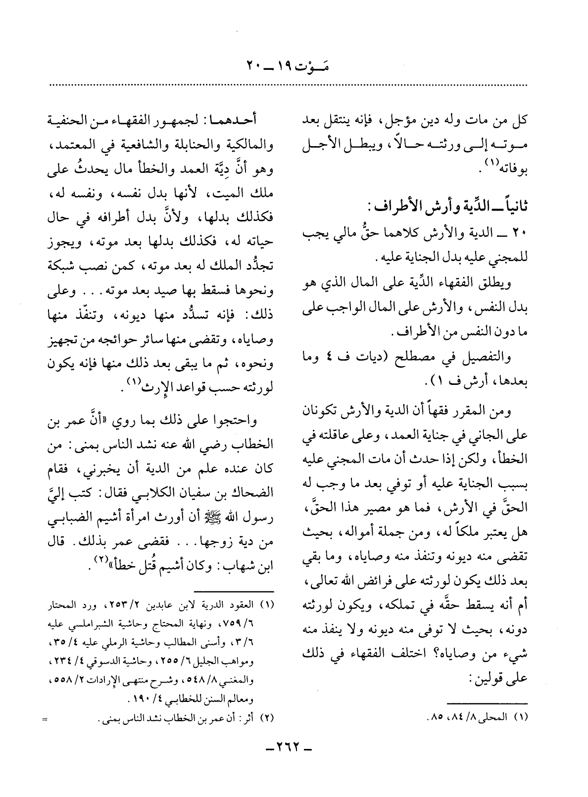 20 - الدِّيَةُ وَالأَْرْشُ كِلاَهُمَا حَقٌّ مَالِيٌّ يَجِبُ لِلْمَجْنِيِّ عَلَيْهِ بَدَل الْجِنَايَةِ عَلَيْهِ.