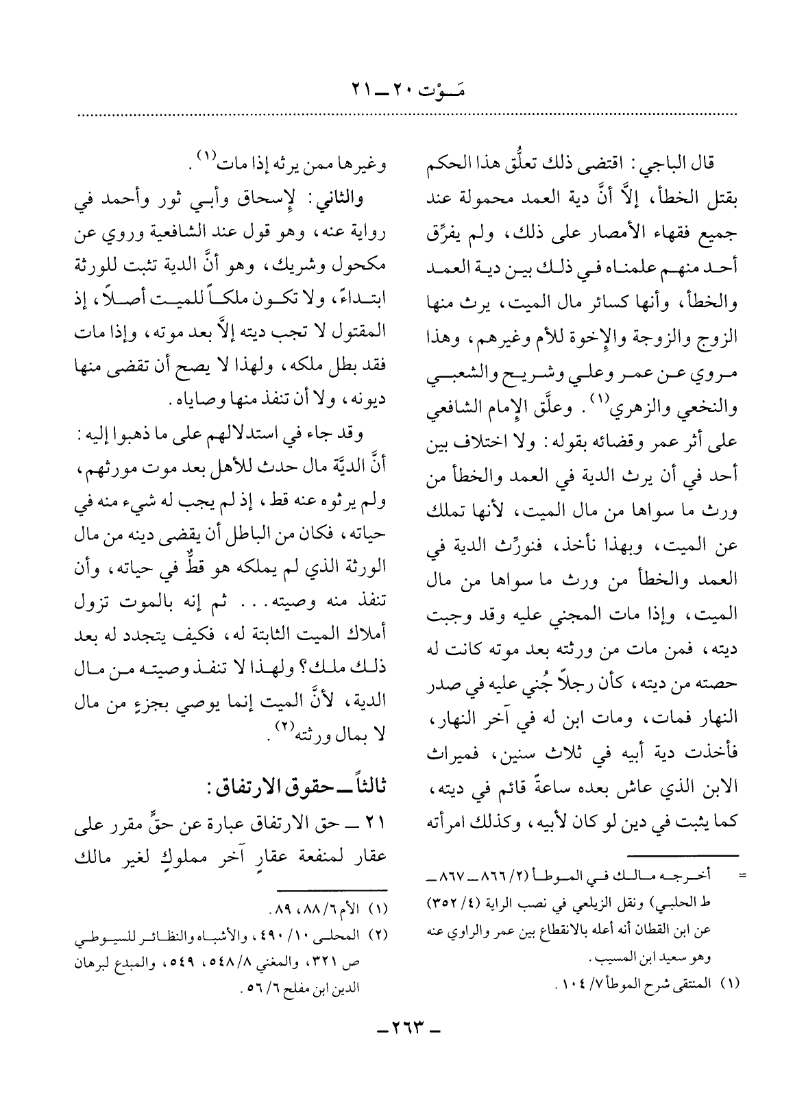 21 - حَقُّ الاِرْتِفَاقِ عِبَارَةٌ عَنْ حَقٍّ مُقَرَّرٍ عَلَى عَقَارٍ لِمَنْفَعَةِ عَقَارٍ آخَرَ مَمْلُوكٍ لِغَيْرِ مَالِكِ