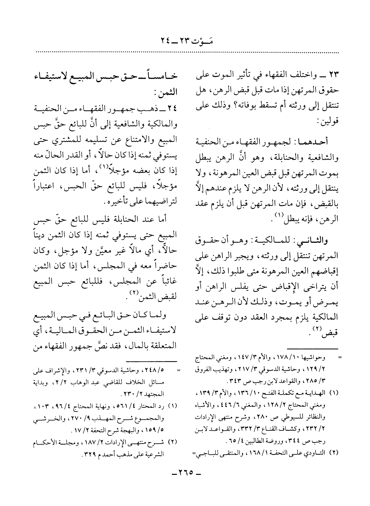 خَامِسًا - حَقُّ حَبْسِ الْمَبِيعِ لاِسْتِيفَاءِ الثَّمَنِ