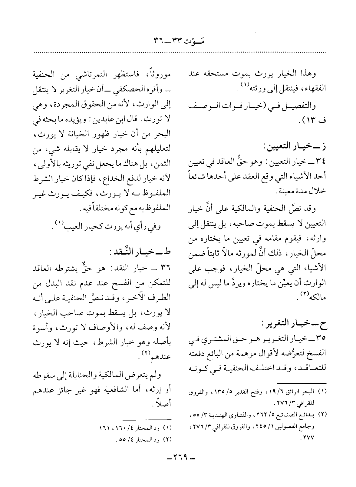 (2) بدائع الصنائع 5 / 262، والفتاوى الهندية 3 / 55، وجامع الفصولين 1 / 245، والفروق للقرافي 3 / 276، 277.