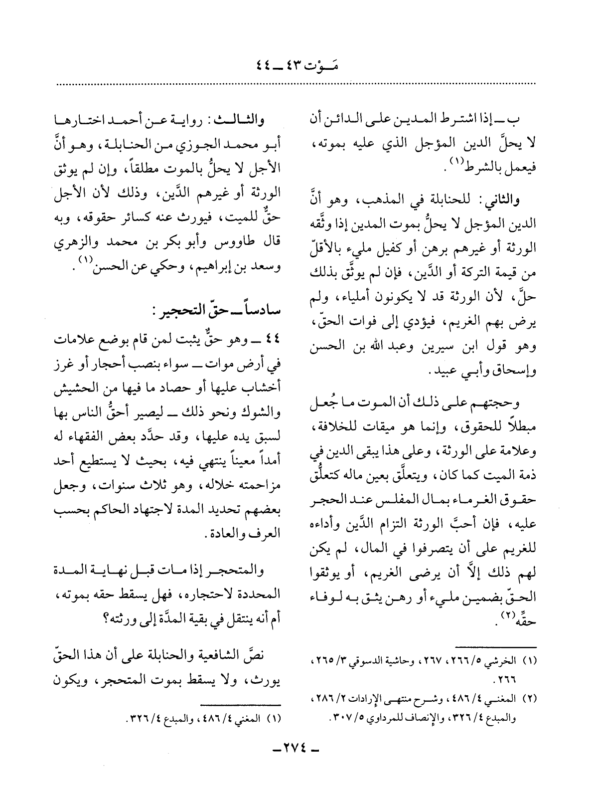 (2) المغني 4 / 486، وشرح منتهى الإرادات 2 / 286، والمبدع 4 / 326، والإنصاف للمرداوي 5 / 307.