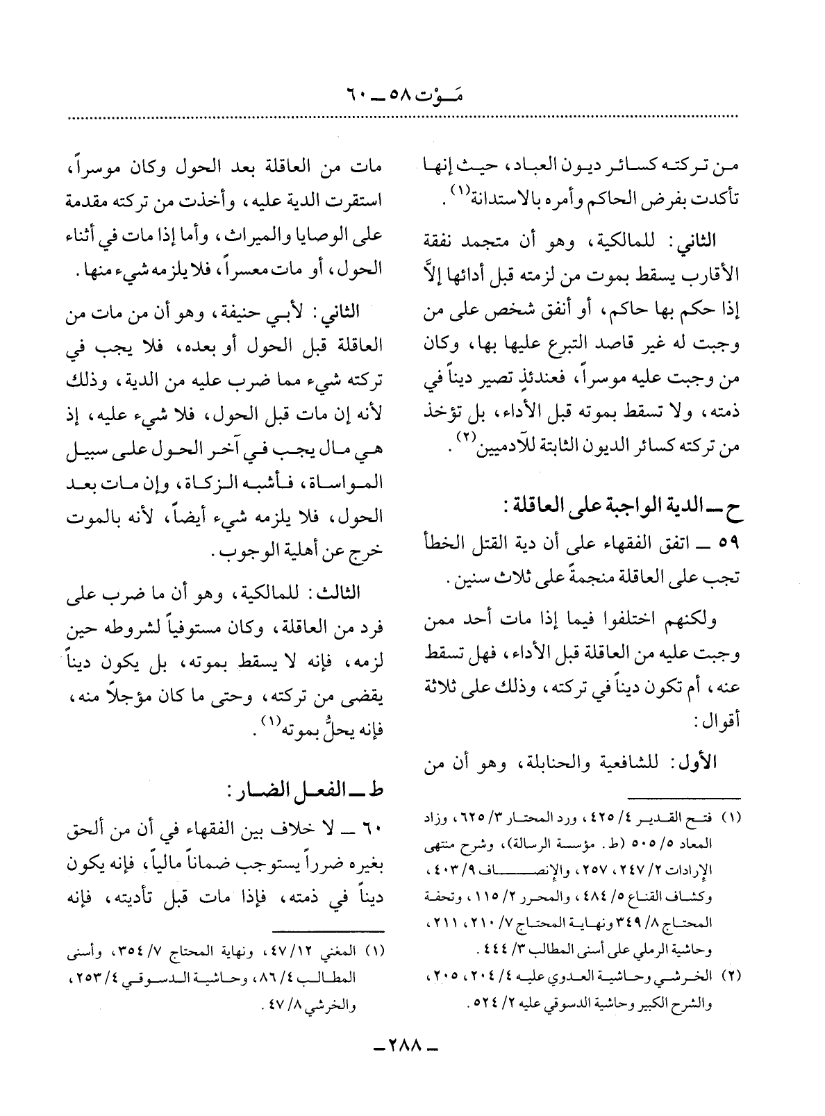 59 - اتَّفَقَ الْفُقَهَاءُ عَلَى أَنَّ دِيَةَ الْقَتْل الْخَطَأِ تَجِبُ عَلَى الْعَاقِلَةِ مُنَجَّمَةً عَلَى ثَلاَثِ سِنِينَ.