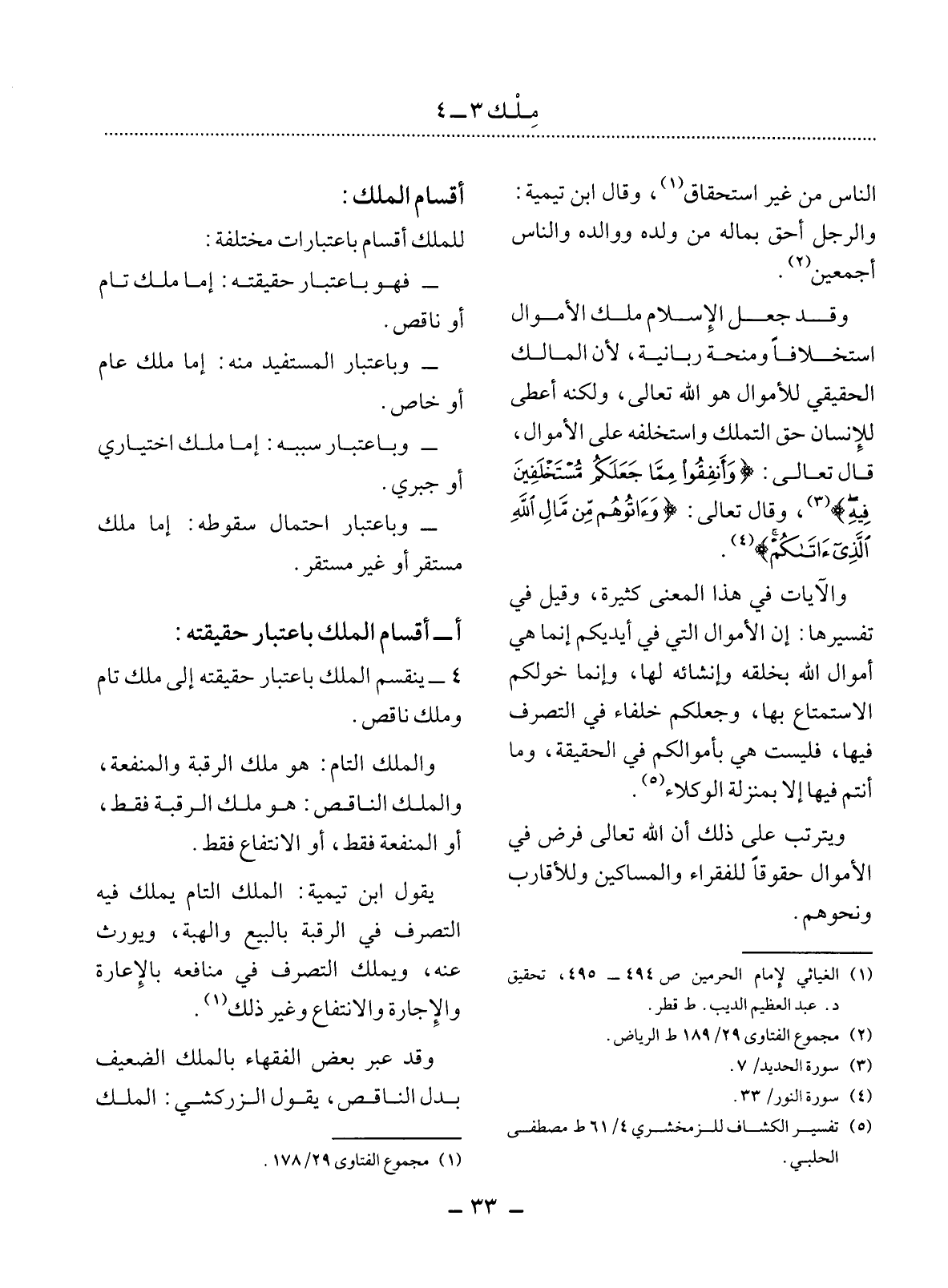4 - يَنْقَسِمُ الْمِلْكُ بِاعْتِبَارِ حَقِيقَتِهِ إِلَى مِلْكٍ تَامٍّ وَمِلْكٍ نَاقِصٍ.