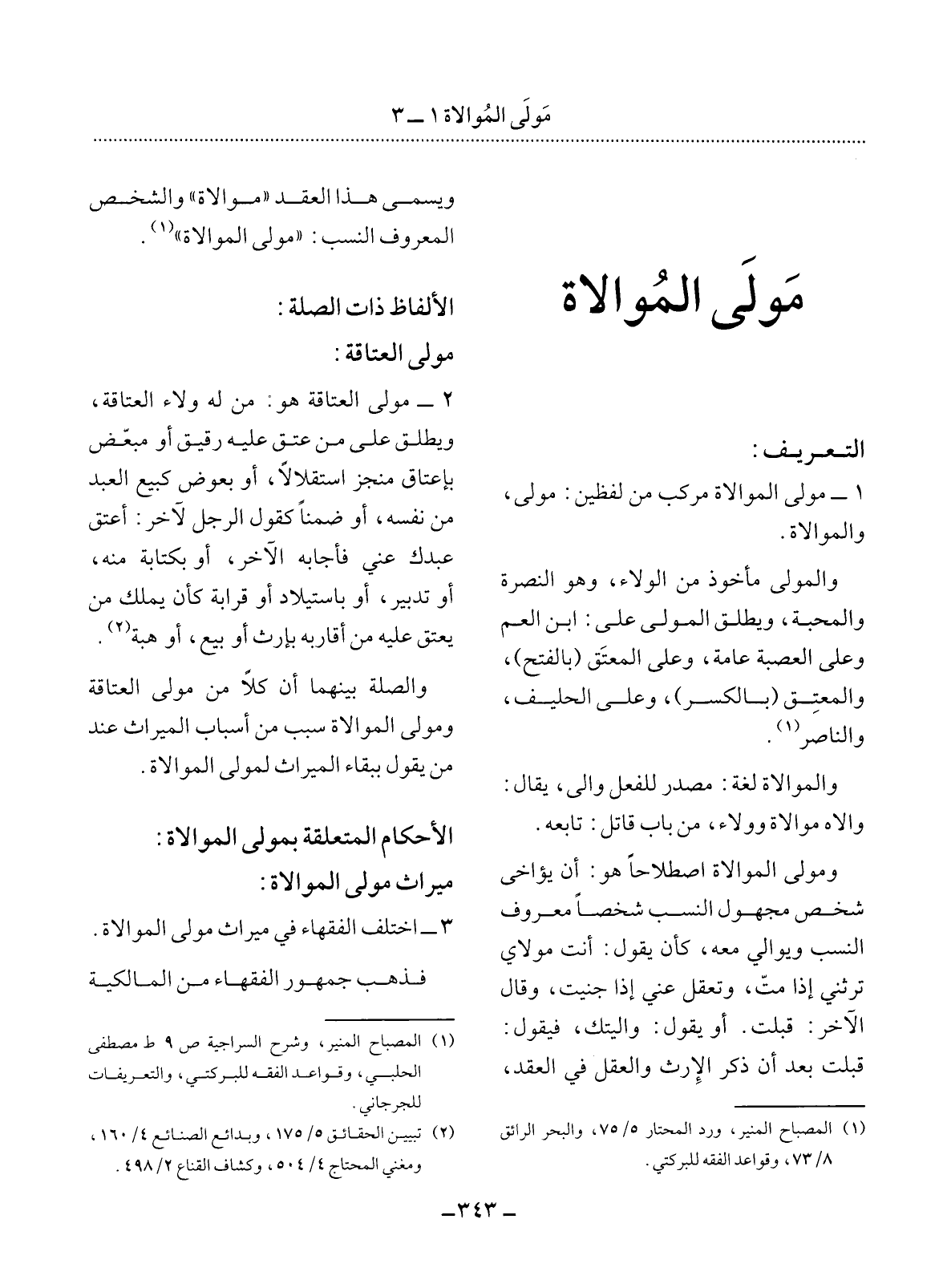 1 - مَوْلَى الْمُوَالاَةِ مُرَكَّبٌ مِنْ لَفْظَيْنِ: مَوْلًى، وَالْمُوَالاَةُ.