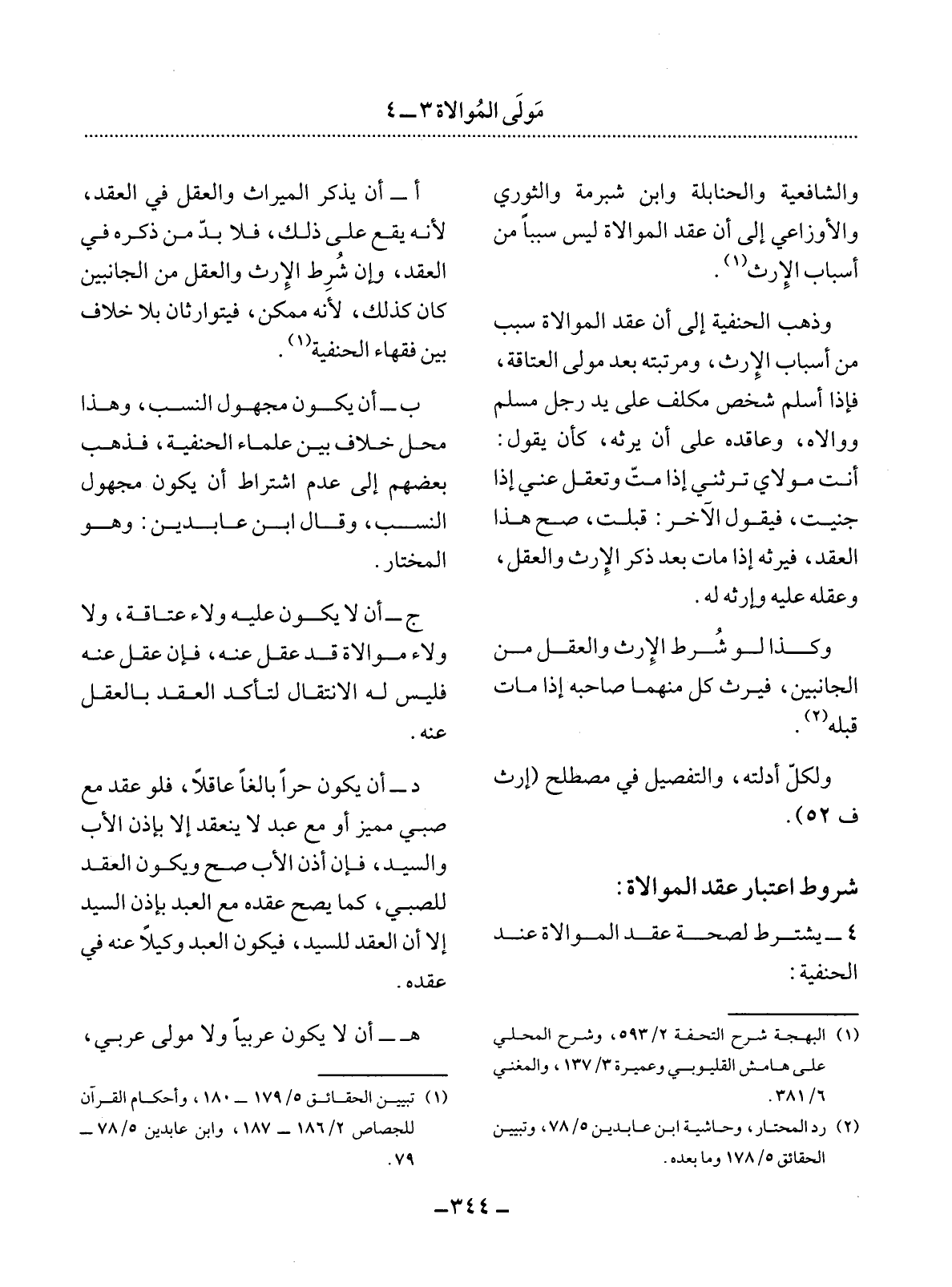 (2) رد المحتار، وحاشية ابن عابدين 5 / 78، وتبيين الحقائق 5 / 178 وما بعده.