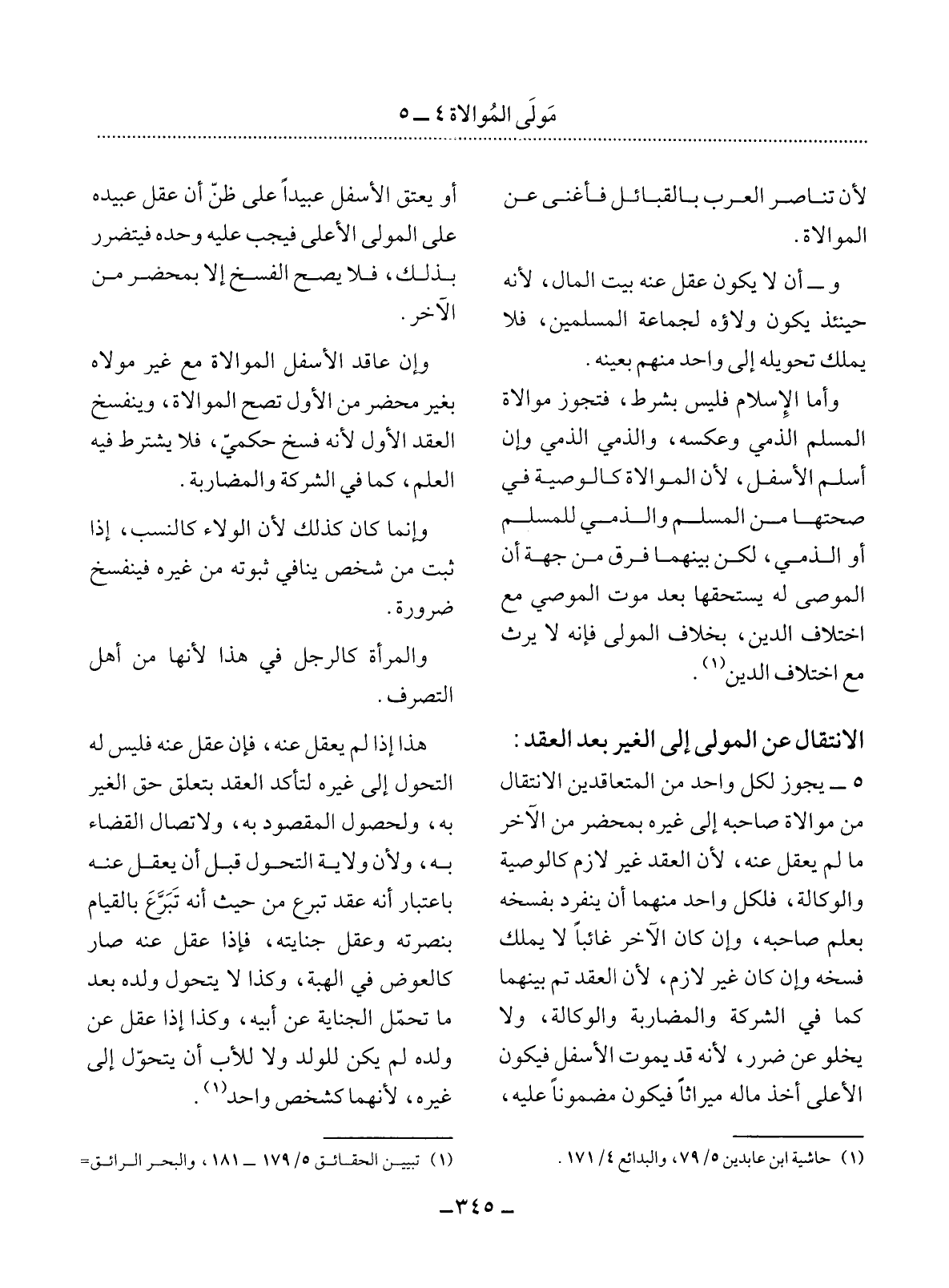 (1) حاشية ابن عابدين 5 / 79، والبدائع 4 / 171.