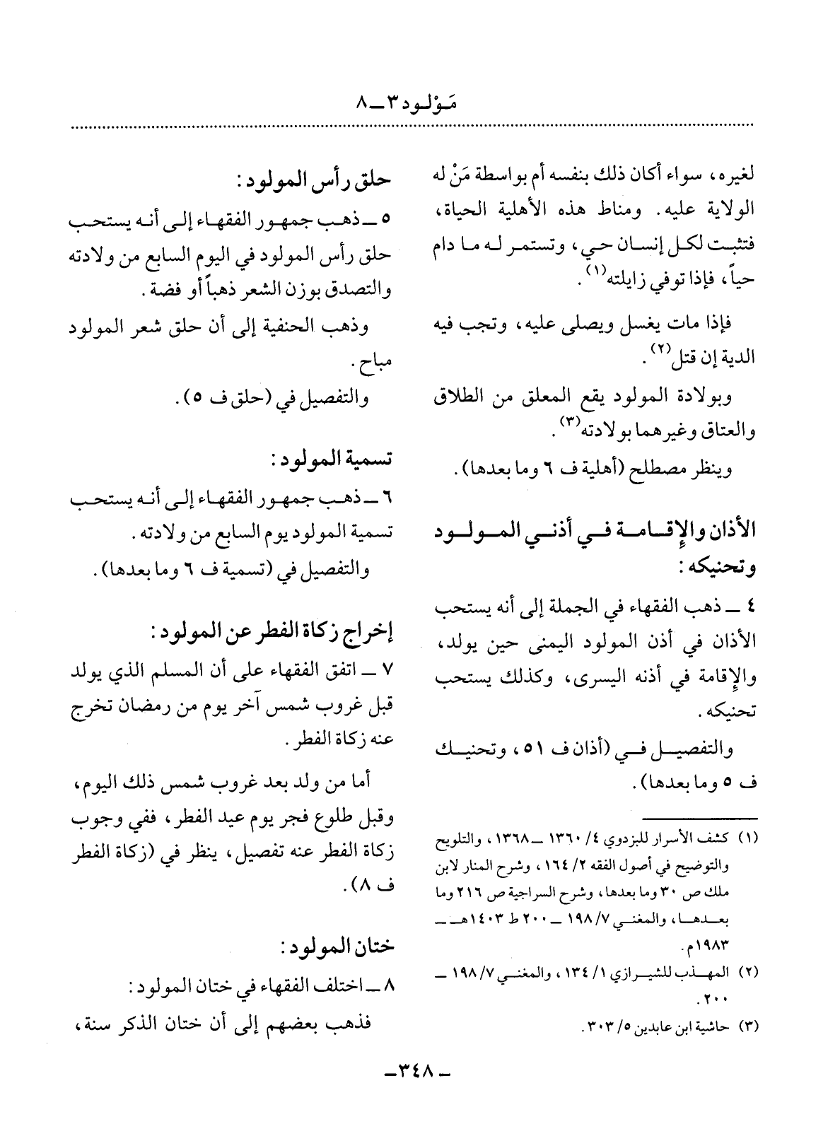 وَبِوِلاَدَةِ الْمَوْلُودِ يَقَعُ الْمُعَلَّقُ مِنَ الطَّلاَقِ وَالْعِتَاقِ وَغَيْرِهِمَا بِوِلاَدَتِهِ (3) .
