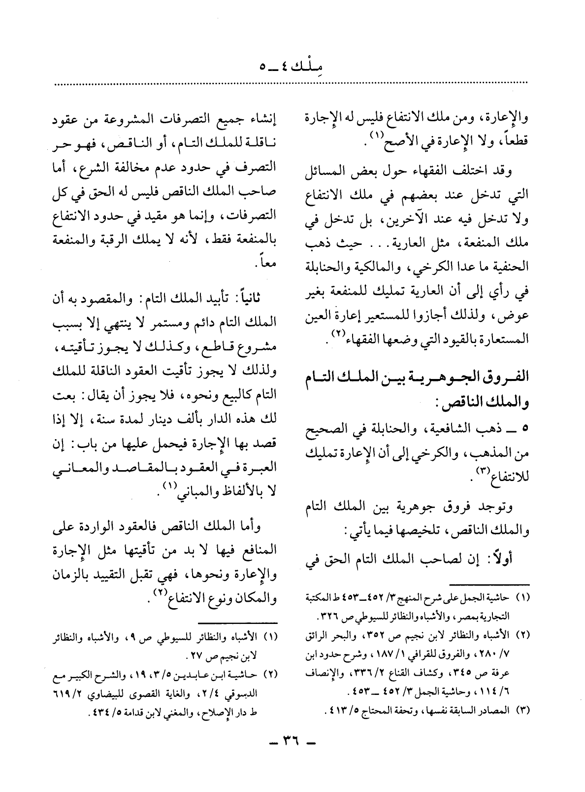 الْفُرُوقُ الْجَوْهَرِيَّةُ بَيْنَ الْمِلْكِ التَّامِّ وَالْمِلْكِ النَّاقِصِ