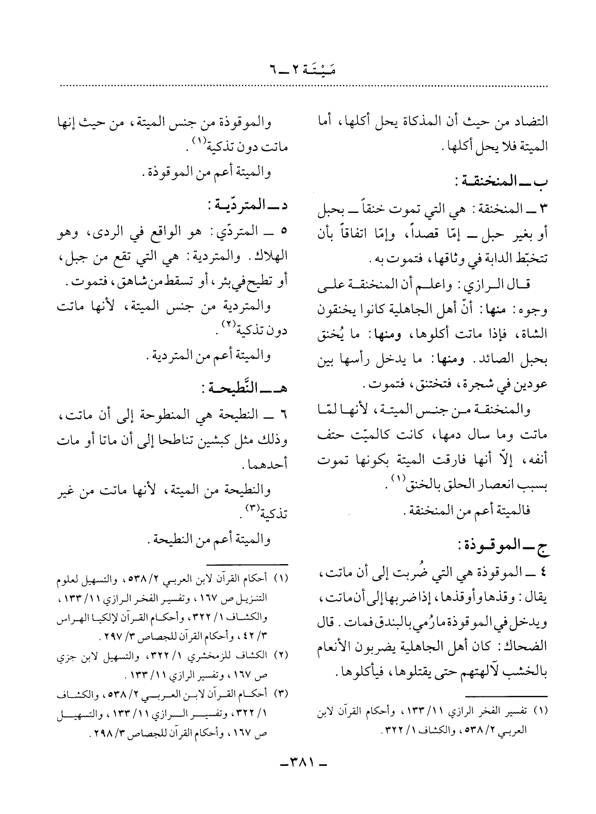 (2) الكشاف للزمخشري 1 / 322، والتسهيل لابن جزي ص 167، وتفسير الرازي 11 / 133.