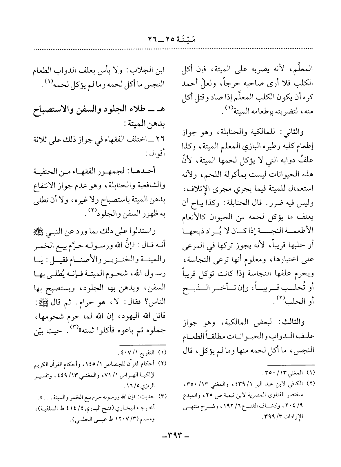 (2) الكافي لابن عبد البر 1 / 439، والمغني 13 / 350، مختصر الفتاوى المصرية لابن تيمية ص 25، والمبدع 9 / 204، وكشاف القناع 6 / 192، وشرح منتهى الإرادات 3 / 399.