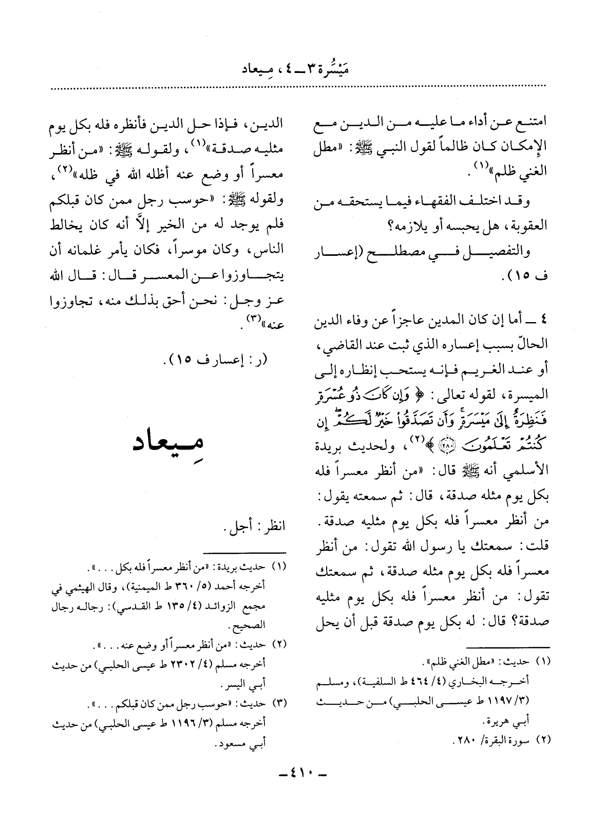 (2) حديث: " من أنظر معسرًا أو وضع عنه. . . ". أخرجه مسلم (4 / 2302 ط عيسى الحلبي) من حديث أبي اليسر.