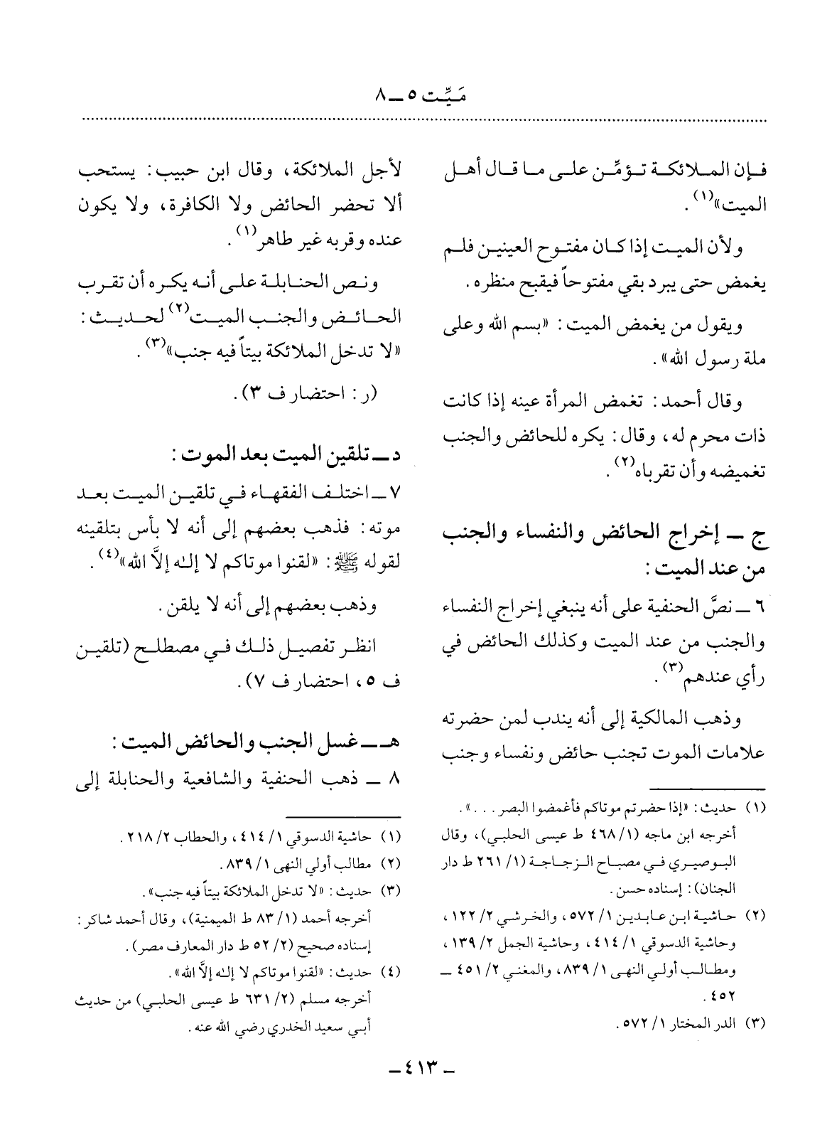 (2) حاشية ابن عابدين 1 / 572، والخرشي 2 / 122، وحاشية الدسوقي 1 / 414، وحاشية الجمل 2 / 139، ومطالب أولي النهى 1 / 839، والمغني 2 / 451 - 452.