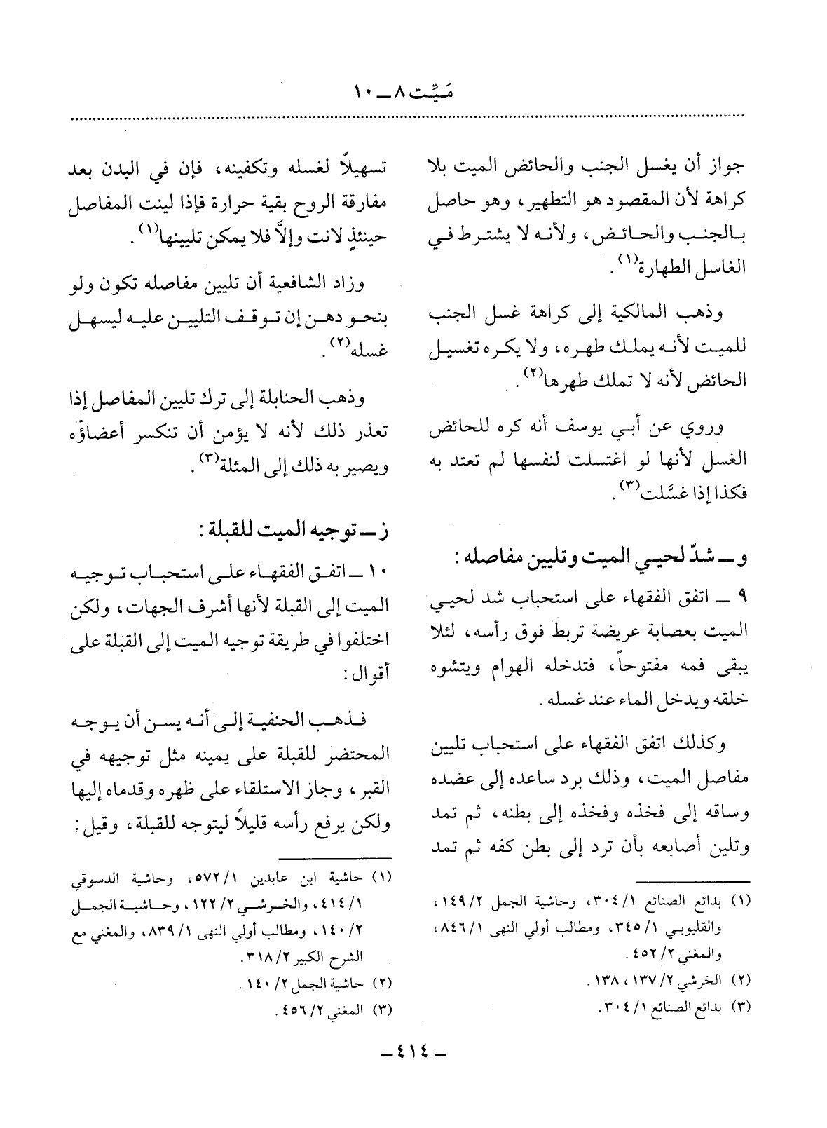 (1) بدائع الصنائع 1 / 304، وحاشية الجمل 2 / 149، والقليوبي 1 / 345، ومطالب أولي النهى 1 / 846، والمغني 2 / 452.