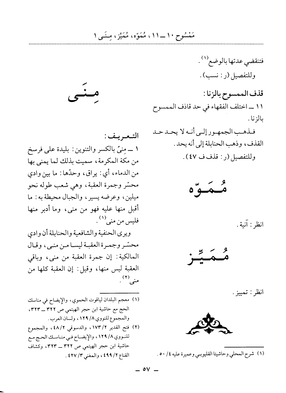(1) معجم البلدان لياقوت الحموي، والإيضاح في مناسك الحج مع حاشية ابن حجر الهيتمي ص 322 - 323، والمجموع للنووي 8 / 129، ولسان العرب.