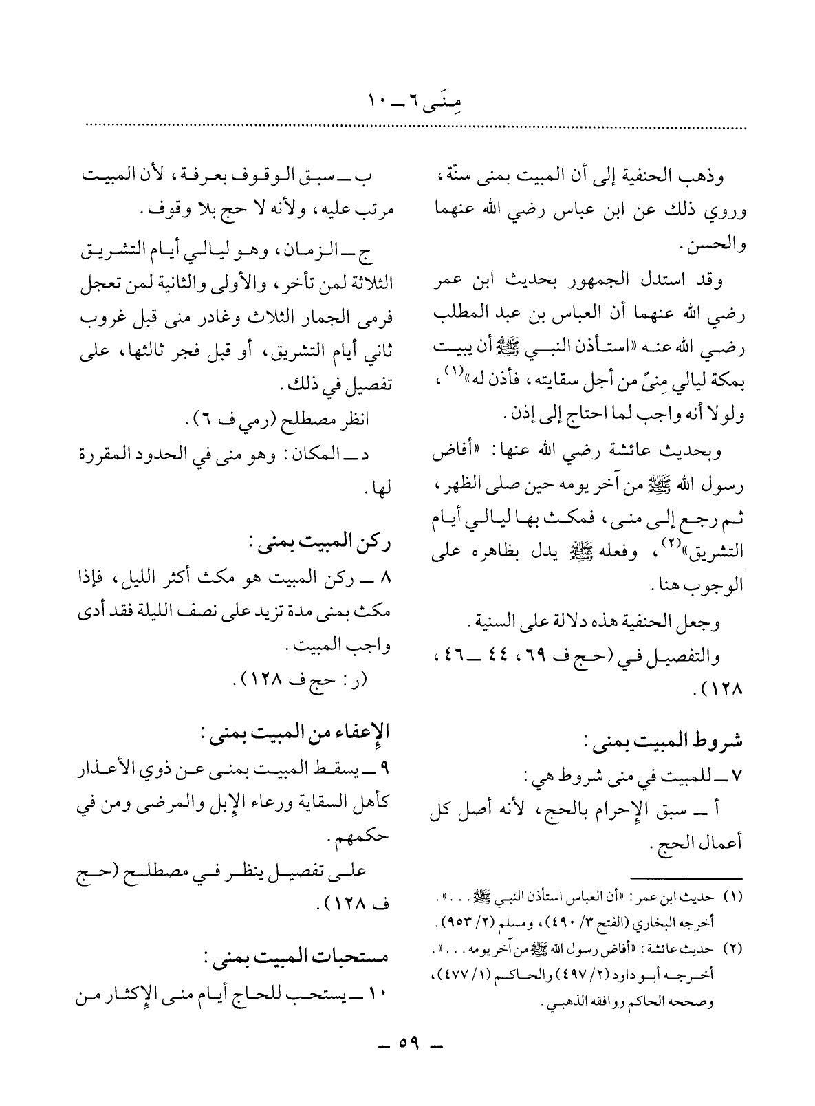 7 - لِلْمَبِيتِ فِي مِنًى شُرُوطٌ هِيَ: