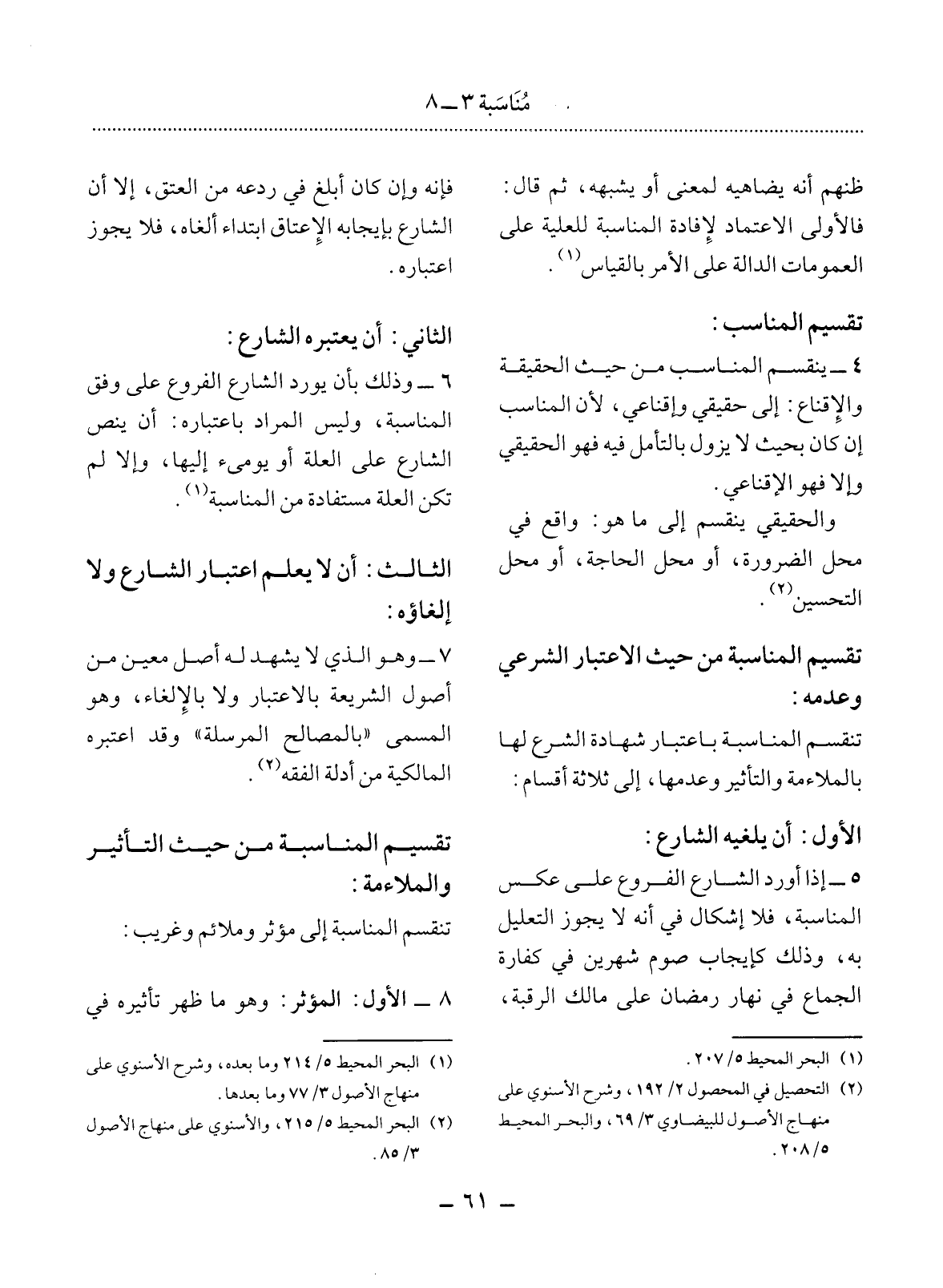 (2) التحصيل في المحصول 2 / 192، وشرح الأسنوي على منهاج الأصول للبيضاوي 3 / 69، والبحر المحيط 5 / 208.