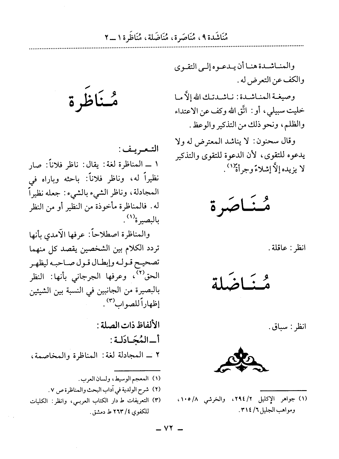 (2) شرح الولدية في آداب البحث والمناظرة ص 7.