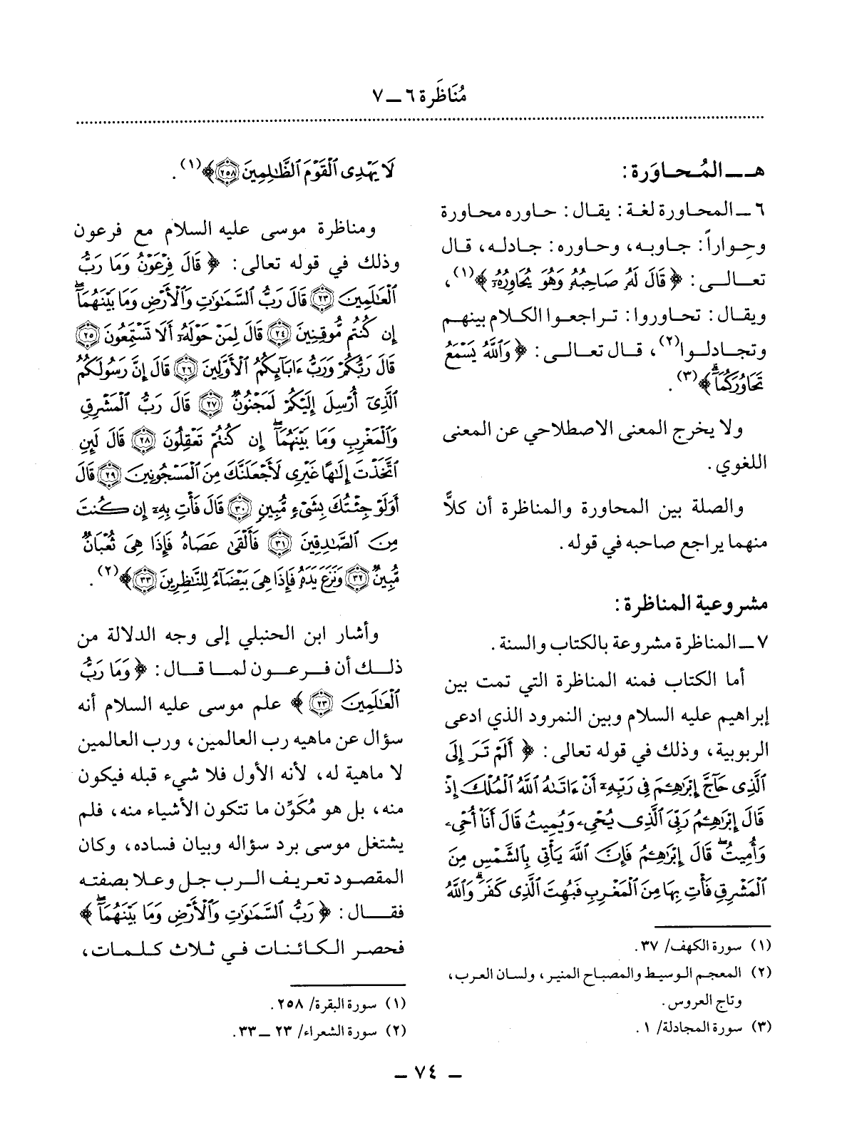 7 - الْمُنَاظَرَةُ مَشْرُوعَةٌ بِالْكِتَابِ وَالسُّنَّةِ.