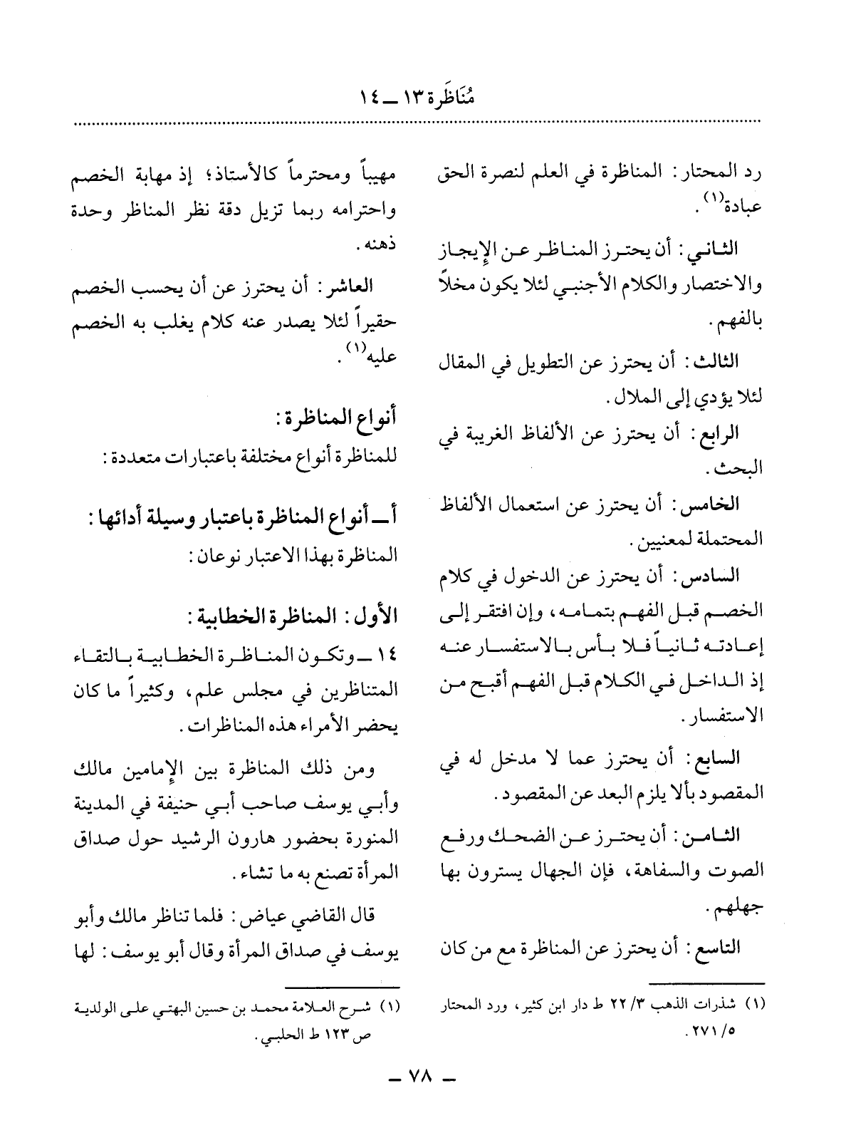 رَدِّ الْمُحْتَارِ: الْمُنَاظَرَةُ فِي الْعِلْمِ لِنُصْرَةِ الْحَقِّ عِبَادَةٌ (1) .