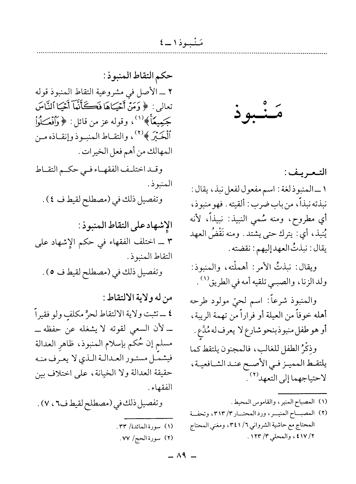(2) المصباح المنير، ورد المحتار 3 / 313، وتحفة المحتاج مع حاشية الشرواني 6 / 341، ومغني المحتاج 2 / 417، والمحلي 3 / 123.