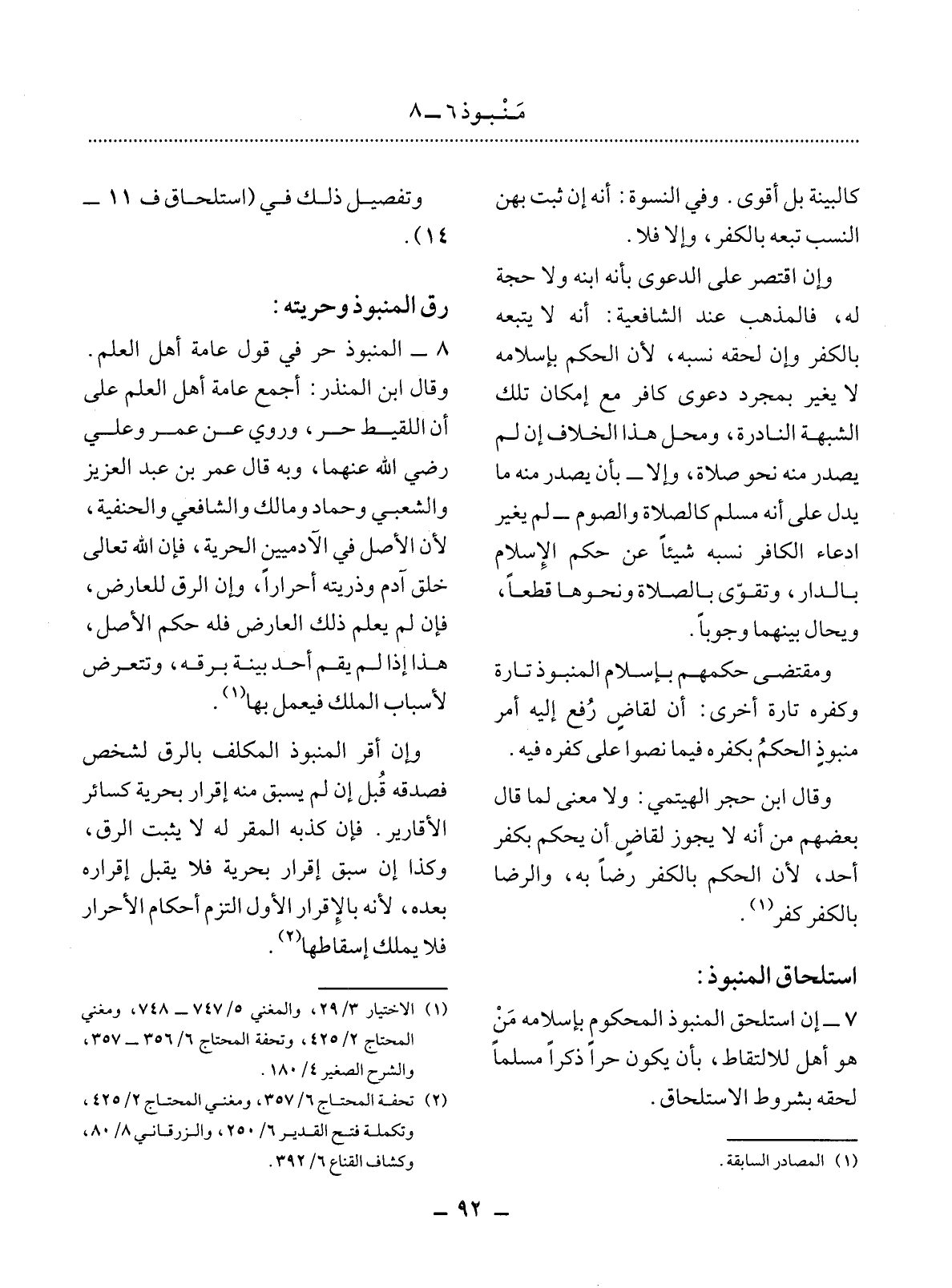 (2) تحفة المحتاج 6 / 357، ومغني المحتاج 2 / 425، وتكملة فتح القدير 6 / 250، والزرقاني 8 / 80، وكشاف القناع 6 / 392.