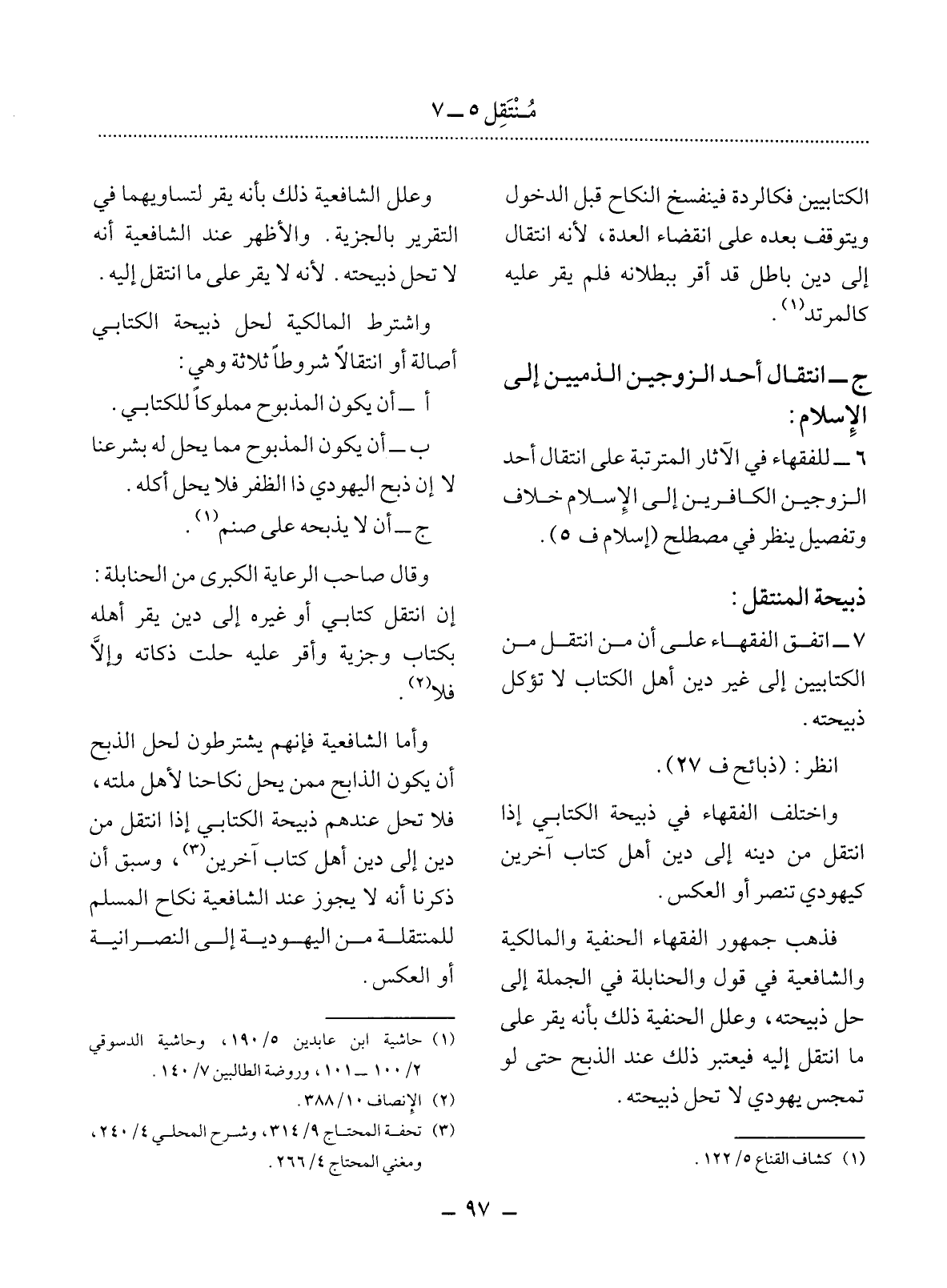 7 - اتَّفَقَ الْفُقَهَاءُ عَلَى أَنَّ مَنِ انْتَقِل مِنَ الْكِتَابِيِّينَ إِلَى غَيْرِ دِينِ أَهْل الْكِتَابِ لاَ تُؤْكَل ذَبِيحَتُهُ.