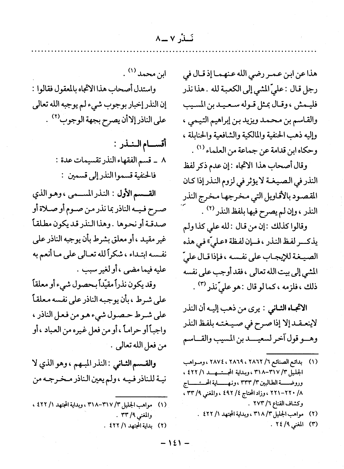 (1) مَوَاهِب الْجَلِيل 3 / 317 - 318، وَبِدَايَة الْمُجْتَهِدِ 1 / 422، وَالْمُغْنِي 9 / 33.