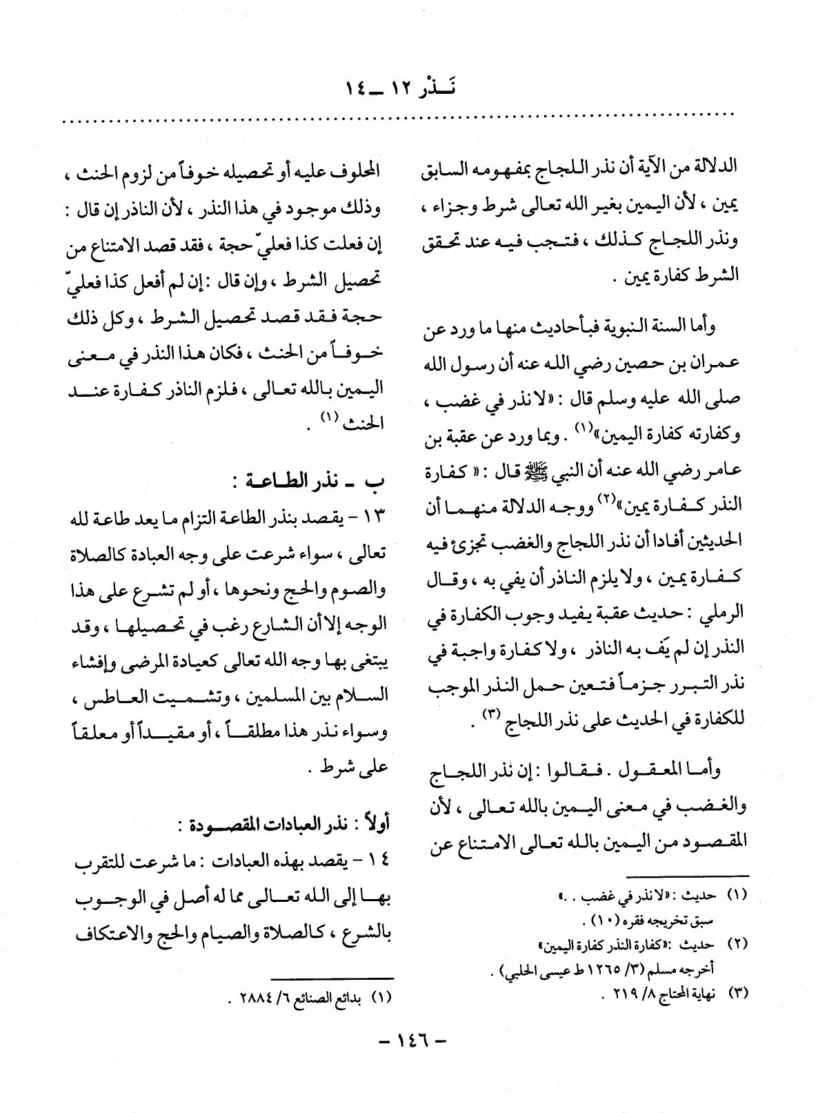 ب - نَذْرُ الطَّاعَةِ: