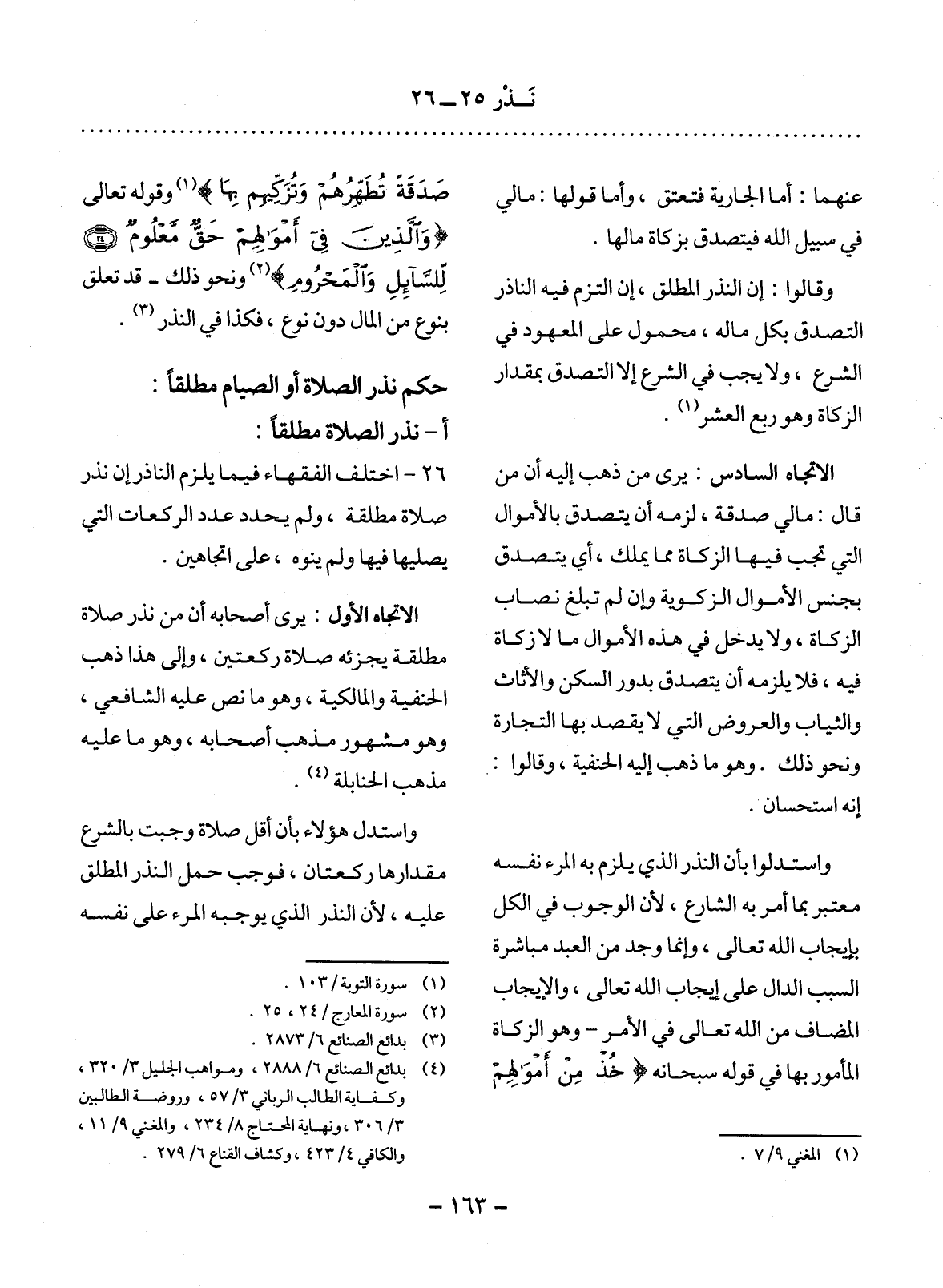 صَدَقَةً تُطَهِّرُهُمْ وَتُزَكِّيهِمْ بِهَا (1) وَقَوْلِهِ تَعَالَى وَالَّذِينَ فِي أَمْوَالِهِمْ حَقٌّ مَعْلُومٌ لِلسَّائِل وَالْمَحْرُومِ (2) وَنَحْوِ ذَلِكَ - قَدْ تَعَلَّقَ بِنَوْعٍ مِنَ الْمَال دُونَ نَوْعٍ، فَكَذَا فِي النَّذْرِ (3) . 50