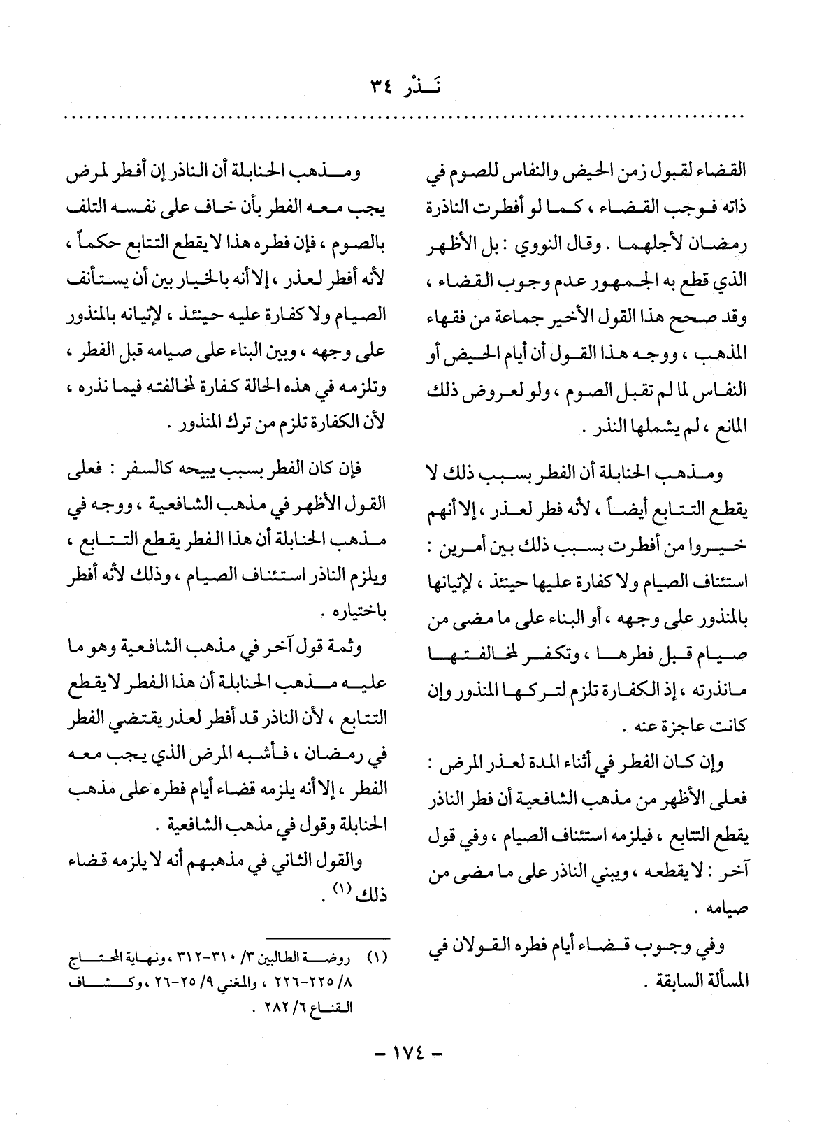 وَثَمَّةَ قَوْلٌ آخَرُ فِي مَذْهَبِ الشَّافِعِيَّةِ وَهُوَ مَا عَلَيْهِ مَذْهَبُ الْحَنَابِلَةِ أَنَّ هَذَا الْفِطْرَ لاَ يَقْطَعُ التَّتَابُعَ؛ لأَِنَّ النَّاذِرَ قَدْ أَفْطَرَ لِعُذْرٍ يَقْتَضِي الْفِطْرَ فِي رَمَضَانَ، فَأَشْبَهَ الْمَرَضَ الَّذِي يَجِبُ مَعَهُ الْفِطْرُ، إِلاَّ أَنَّهُ يَلْزَمُهُ قَضَاءُ أَيَّامِ فِطْرِهِ عَلَى مَذْهَبِ الْحَنَابِلَةِ وَقَوْلٍ فِي مَذْهَبِ الشَّافِعِيَّةِ.