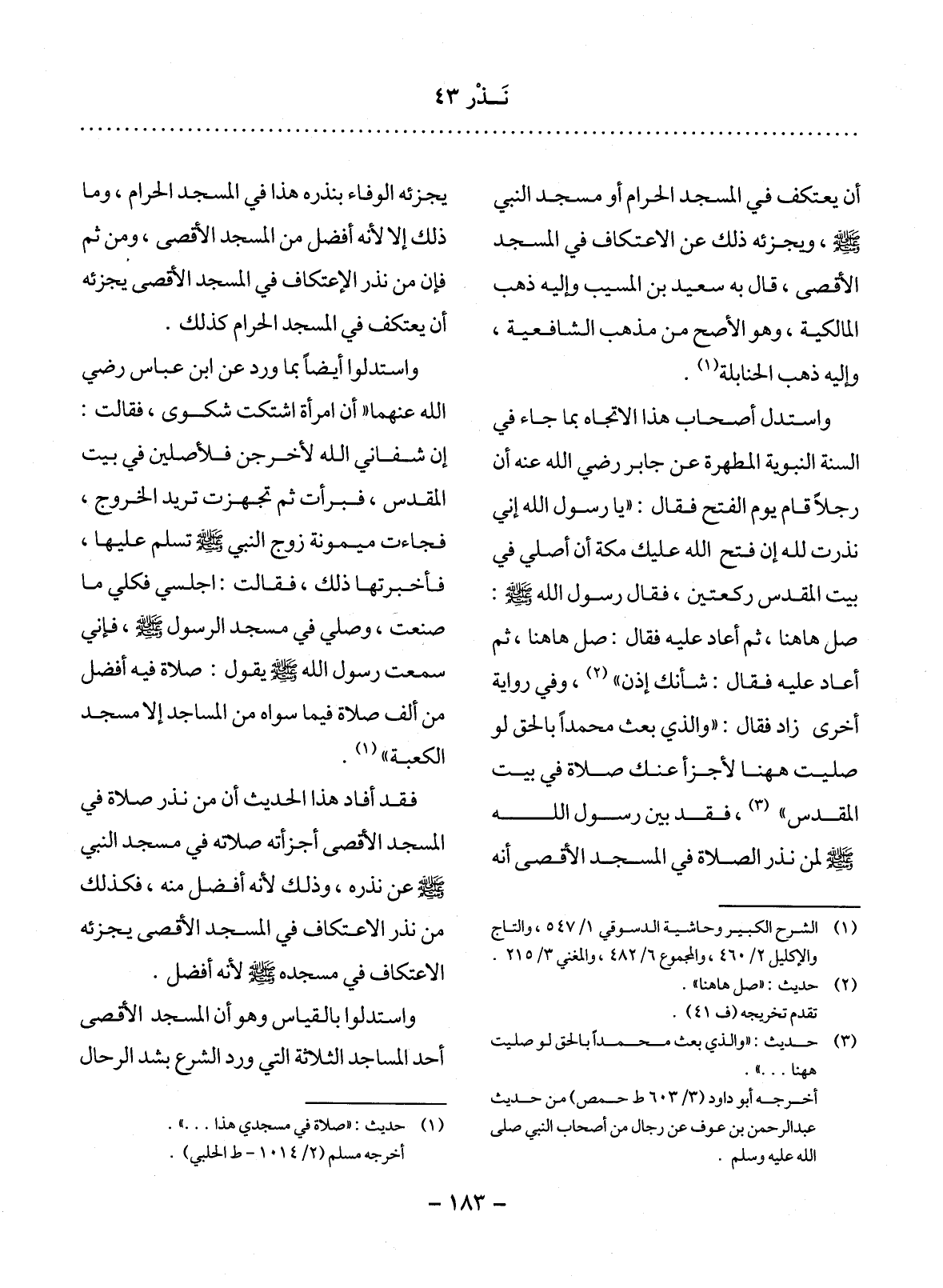 (1) حديث: " صلاة في مسجدي هذا. . . ". أخرجه مسلم (2 / 1014 - ط الحلبي) .