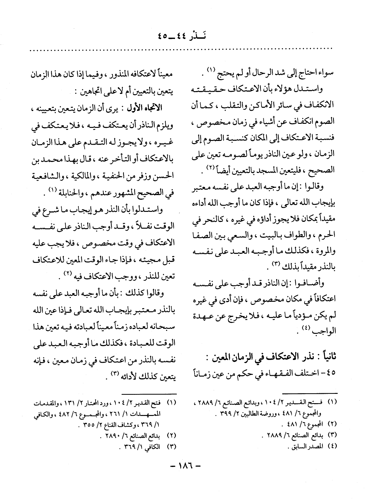 ثَانِيًا: نَذْرُ الاِعْتِكَافِ فِي الزَّمَانِ الْمُعَيَّنِ: