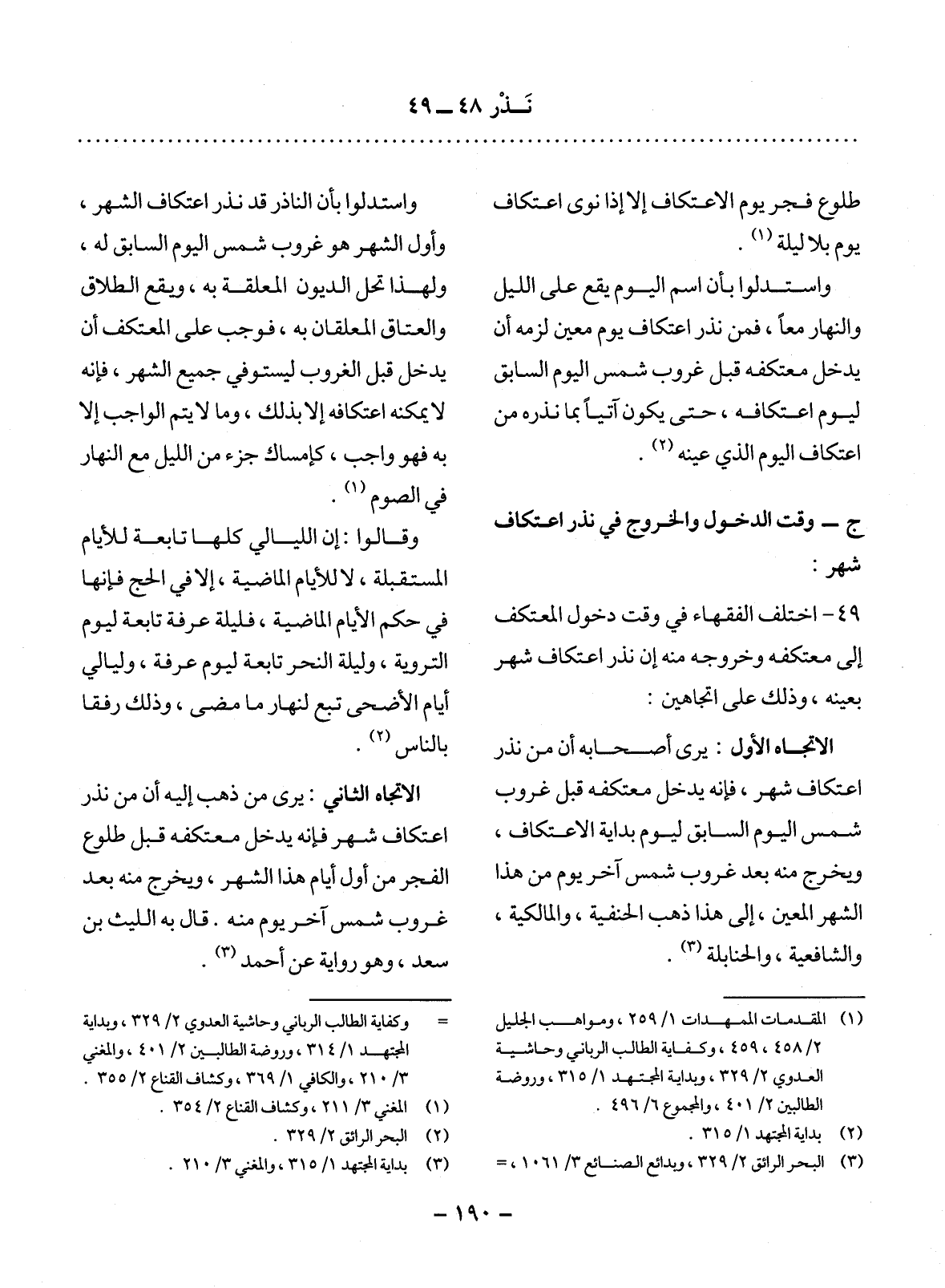 (1) المقدمات الممهدات 1 / 259، ومواهب الجليل 2 / 458، 459، وكفاية الطالب الرباني وحاشية العدوي 2 / 329، وبداية المجتهد 1 / 315، وروضة الطالبين 2 / 401، والمجموع 6 / 496.